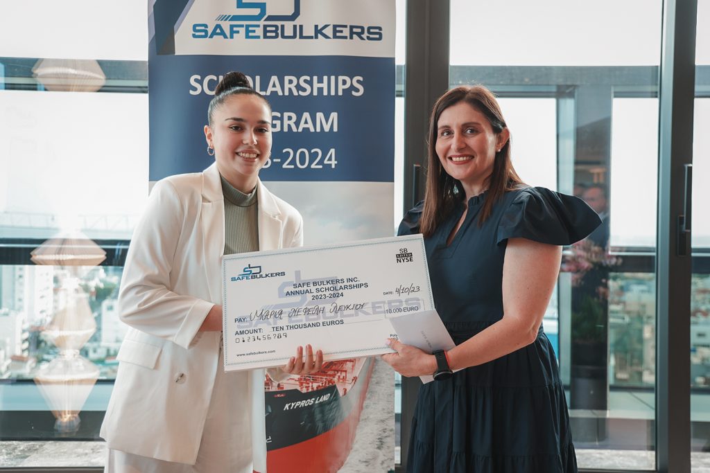 Η Safe Bulkers, Inc και ο Διευθύνων Σύμβουλός της, κ. Πόλυς Β. Χατζηωάννου, συνεχίζουν με συνέπεια για τρίτη συνεχόμενη χρονιά το ετήσιο πρόγραμμα υποτροφιών για Κύπριους πολίτες ή Έλληνες πολίτες εγκατεστημένους στην Κύπρο, που επιθυμούν να σταδιοδρομήσουν στον κλάδο της ναυτιλίας. Η εκδήλωση απονομής των υποτροφιών της Safe Bulkers, Inc. πραγματοποιήθηκε στις 4 Οκτωβρίου 2023, στα κεντρικά γραφεία της Εταιρείας στη Λεμεσό.