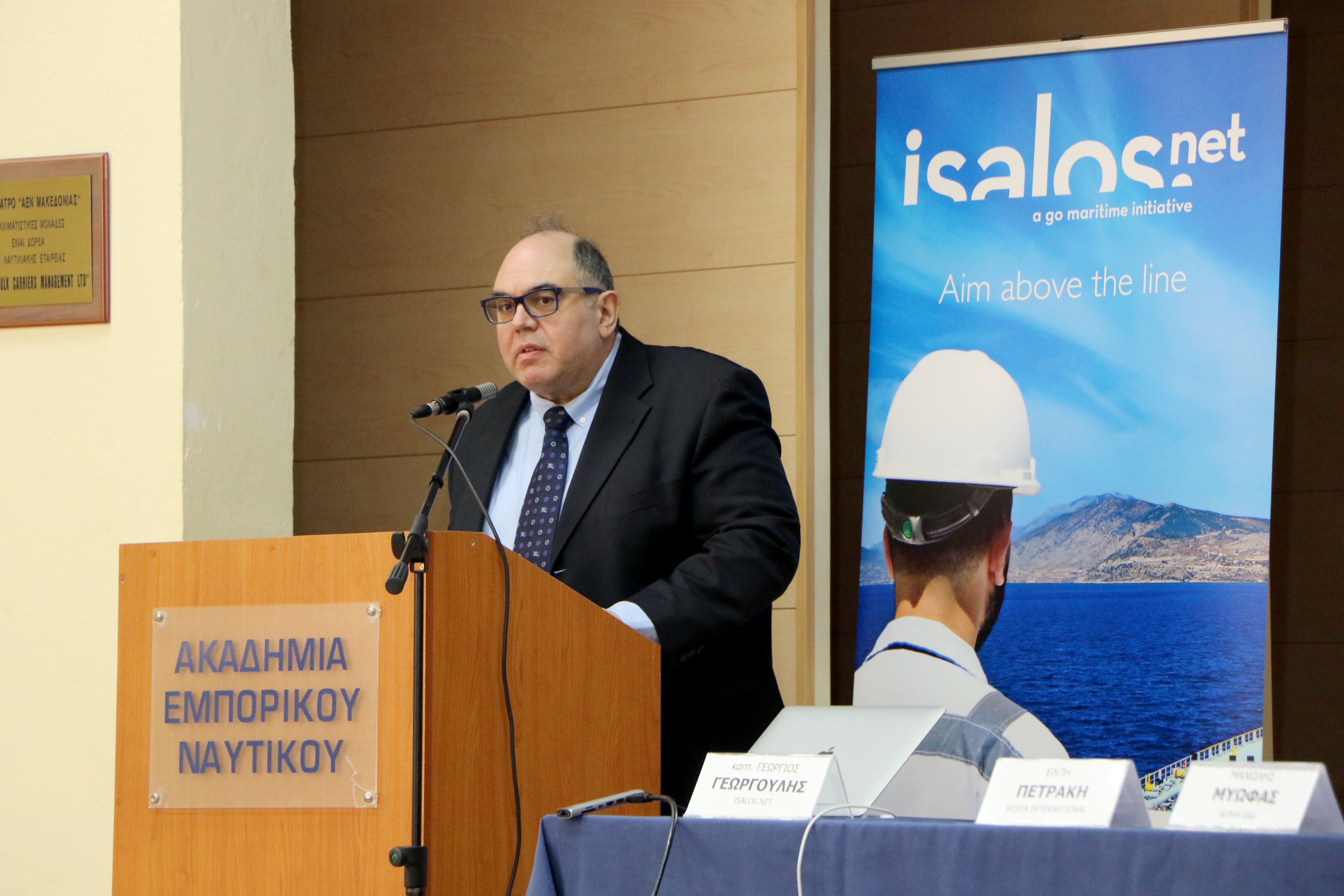 Θα ήθελα να ευχαριστήσω την Isalos.net για την διοργάνωση της Ημερίδας, αλλά και τις εταιρείες με το μεγάλο πλήθος εκπροσώπων που στηρίζουν το έργο της Ακαδημίας Εμπορικού Ναυτικού. Είναι η μοναδική Ακαδημία που βρίσκεται πάνω από τον Βόλο και καλύπτει το μεγαλύτερο μέρος της ηπειρωτικής Ελλάδας γεγονός που μας καθιστά υπεύθυνους για το έργο που έχουμε να επιδείξουμε.