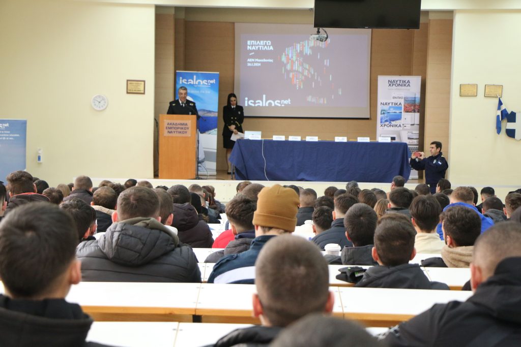 «Σήμερα είναι μια λαμπρή και ξεχωριστή μέρα για την Ακαδημία μας, καθώς έχουμε την τιμή να φιλοξενούμε στις εγκαταστάσεις της Ακαδημίας μας την ημερίδα Επιλέγω Ναυτιλία της Isalos.net, έναν πολύτιμο θεσμό που έχει καθιερωθεί τα τελευταία χρόνια, στο πλαίσιο της αλληλεπίδρασης των σπουδαστών των Ακαδημιών Εμπορικού Ναυτικού με ναυτιλιακές εταιρείες.