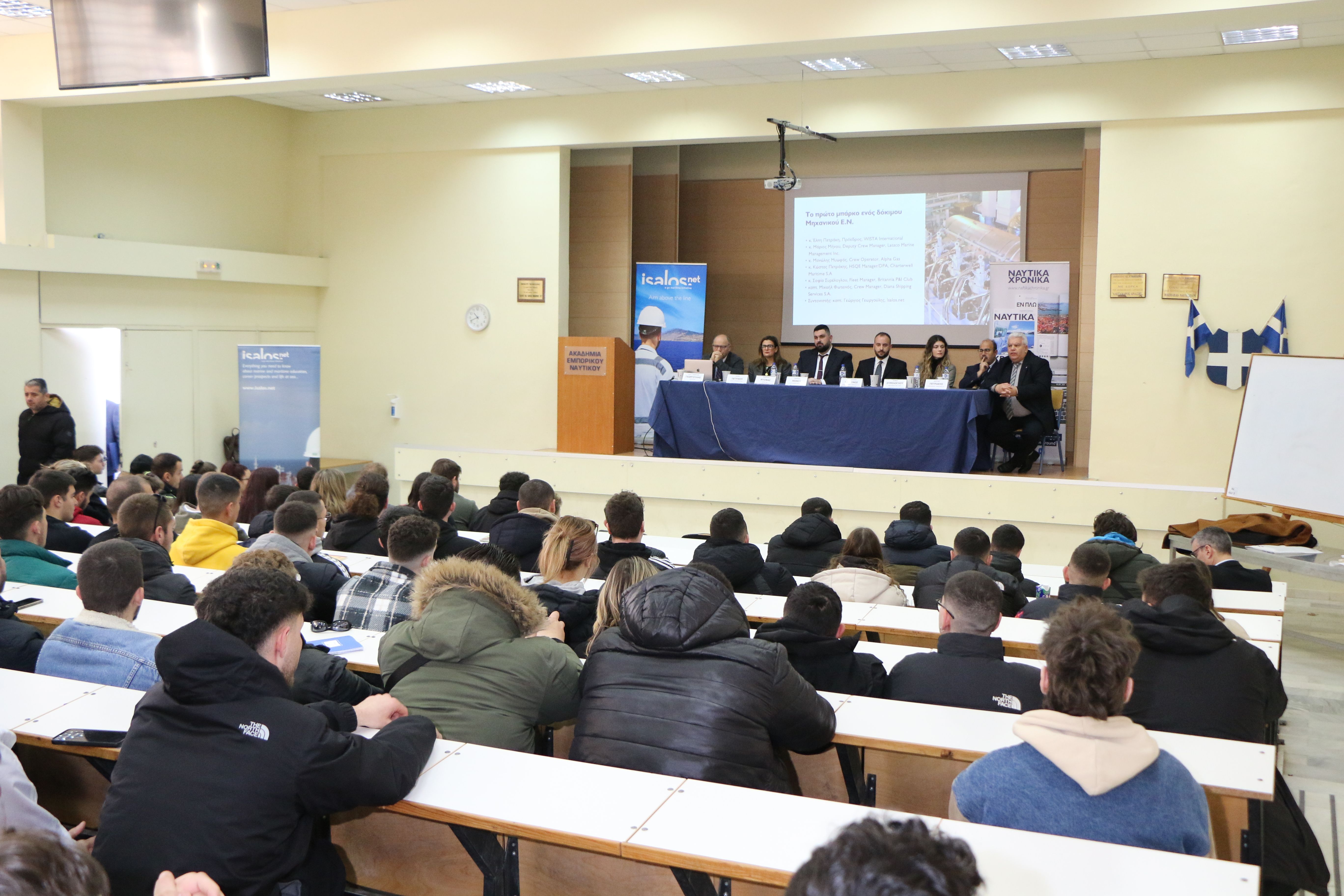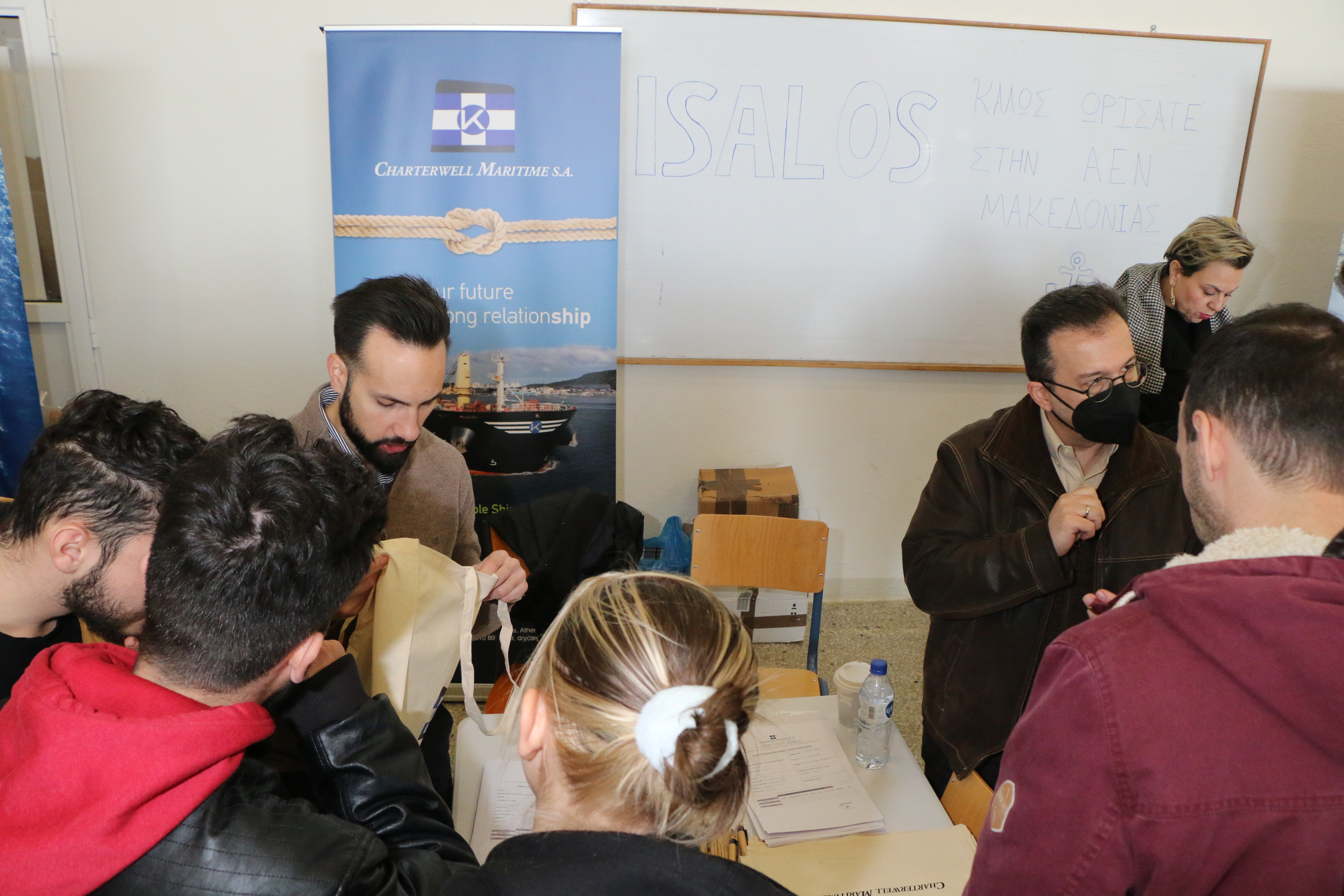 Στο πλαίσιο των πανελλαδικών επιμορφωτικών εκδηλώσεων που έχει υιοθετήσει και διεξάγει συστηματικά η ομάδα της Isalos.net, διοργάνωσε για μια ακόμη χρονιά ημερίδα- συνάντηση των σπουδαστών των Σχολών Πλοιάρχων & Μηχανικών της ΑΕΝ Μακεδονίας με εκπροσώπους ναυτιλιακών εταιρειών. Η εκδήλωση πραγματοποιήθηκε και φέτος στις εγκαταστάσεις της ΑΕΝ Μακεδονίας στη Νέα Μηχανιώνα.