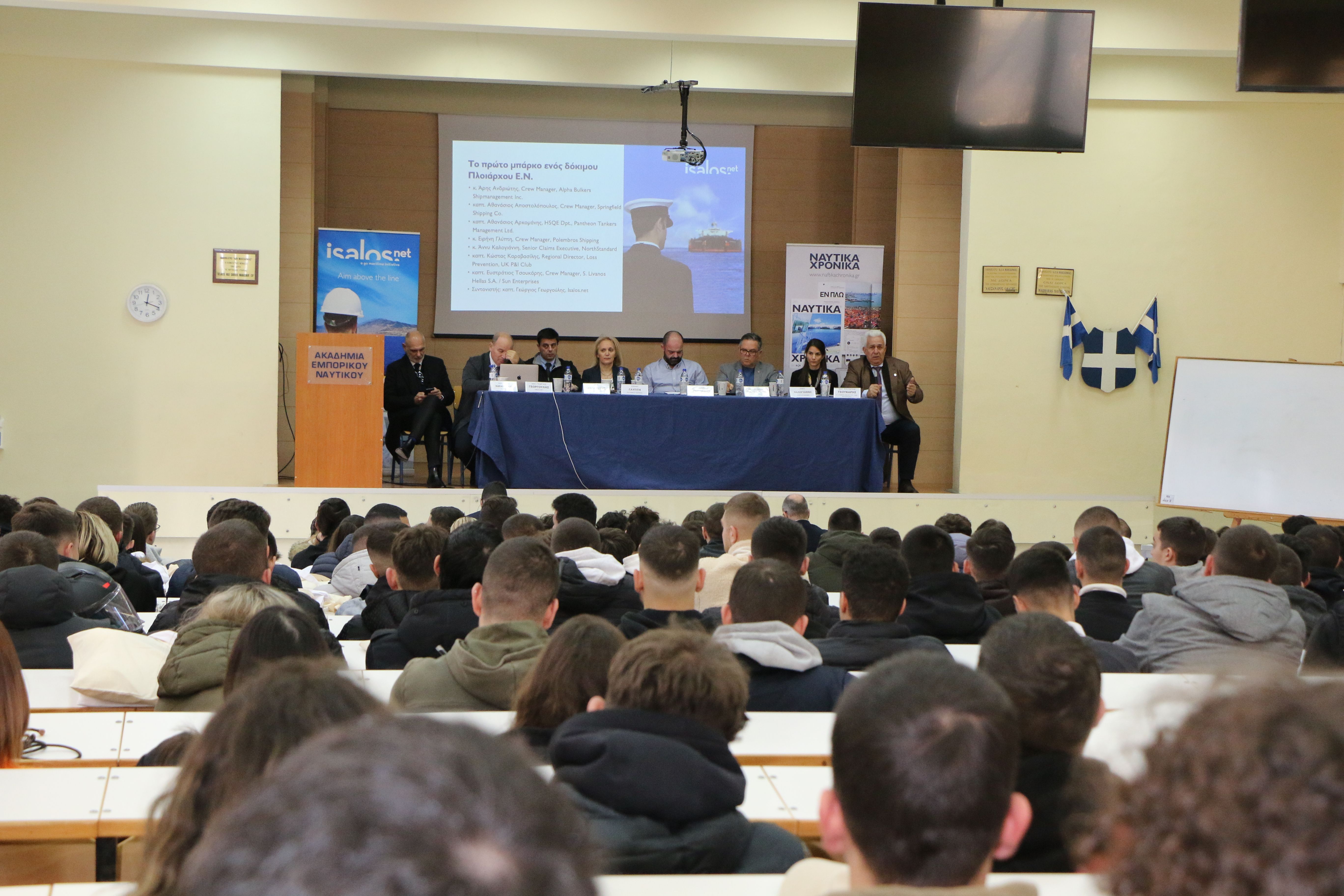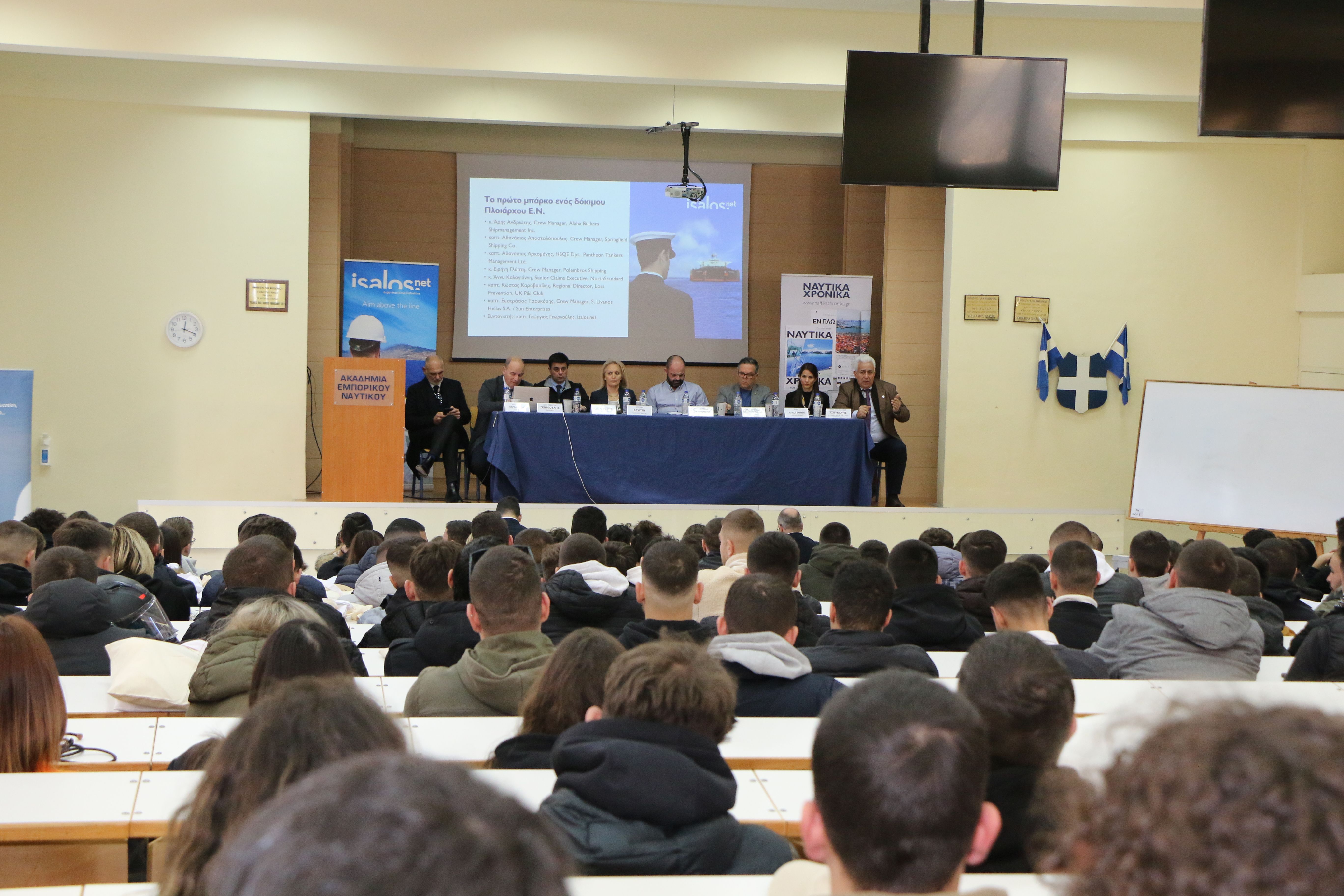 «Σήμερα είναι μια λαμπρή και ξεχωριστή μέρα για την Ακαδημία μας, καθώς έχουμε την τιμή να φιλοξενούμε στις εγκαταστάσεις της Ακαδημίας μας την ημερίδα Επιλέγω Ναυτιλία της Isalos.net, έναν πολύτιμο θεσμό που έχει καθιερωθεί τα τελευταία χρόνια, στο πλαίσιο της αλληλεπίδρασης των σπουδαστών των Ακαδημιών Εμπορικού Ναυτικού με ναυτιλιακές εταιρείες.