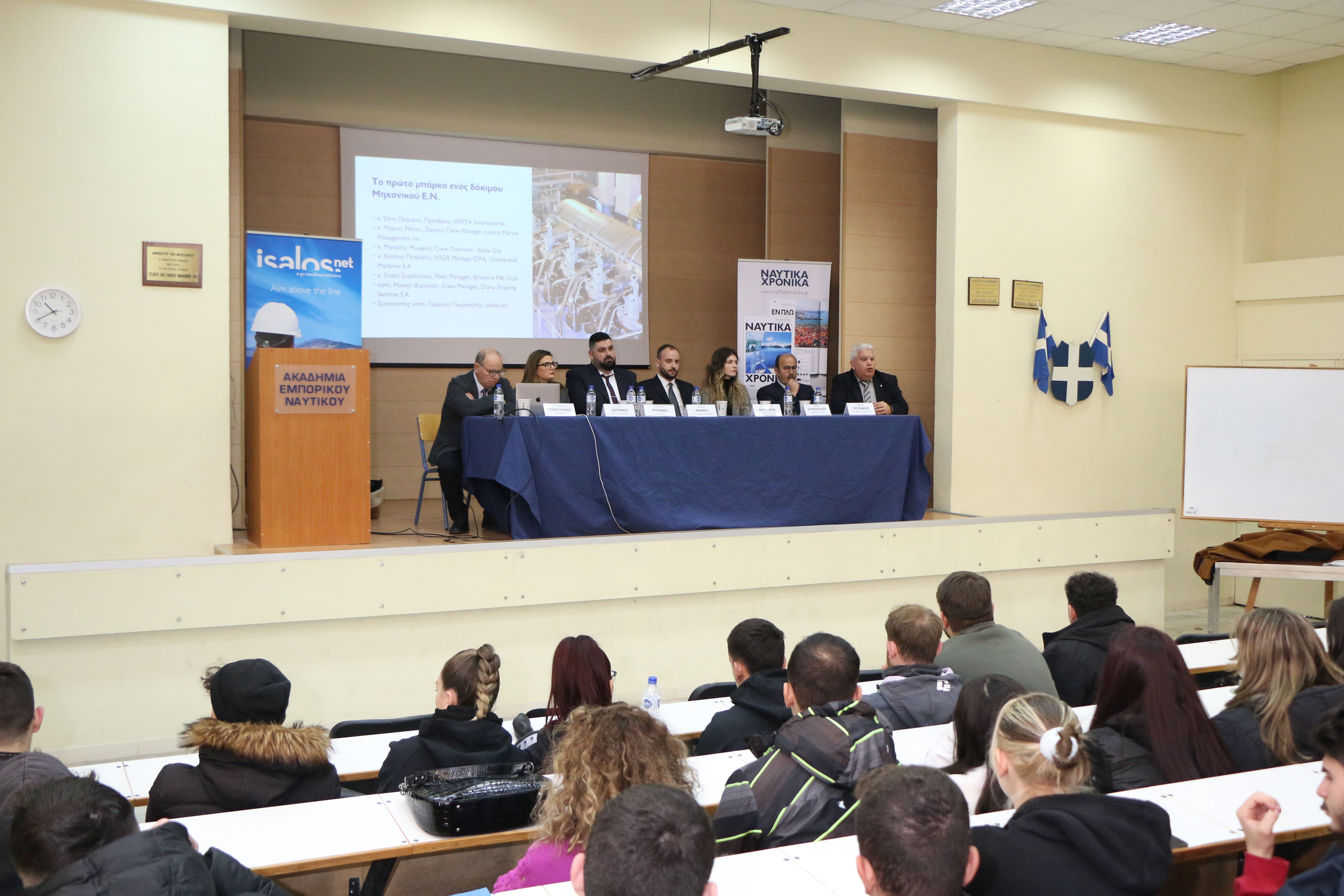Η εν λόγω δράση έχει ιδιαίτερα προστιθέμενη αξία και πρωτοστατεί στα ναυτιλιακά δρώμενα, καθώς οι σπουδαστές μας, με γνώμονα την εξωστρέφεια της Ακαδημίας μας, έχουν την ευκαιρία να ενημερωθούν από πρώτο χέρι, από έμπειρα και καταξιωμένα στελέχη του ναυτιλιακού κλάδου, για το εκπαιδευτικό τους ταξίδι, ζητήματα αρμοδιότητας, ασφάλειας και ιεραρχίας εντός του πλοίου, καθώς και για τις προκλήσεις του ναυτικού επαγγέλματος.»