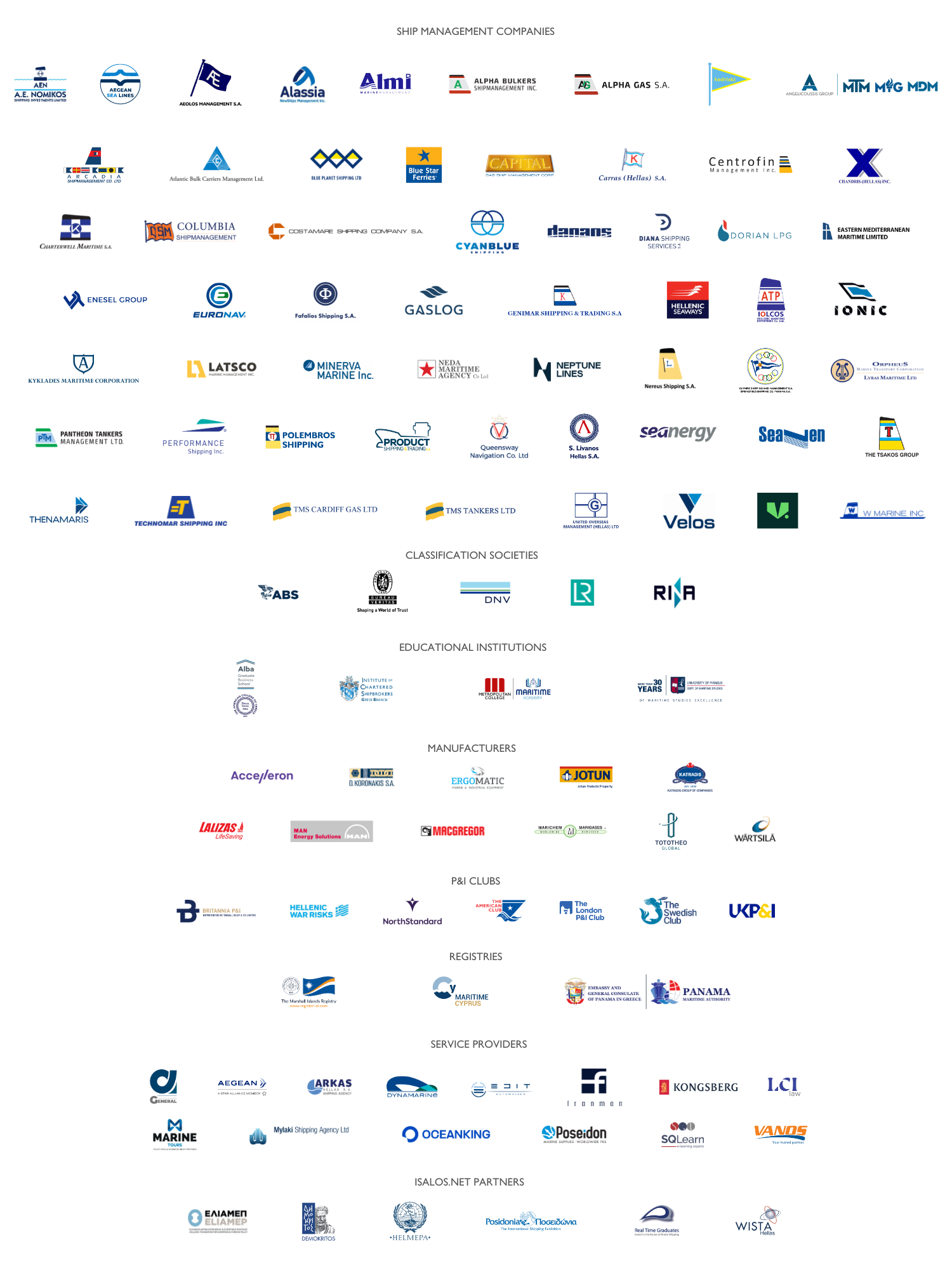 Χορηγοί του «Isalos.net & HELMEPA Maritime Sustainability Camp» είναι η Andriaki Shipping Co. Ltd, η DK Fotinakis, η Mylaki Shipping Agency Ltd., η Onex Neorion Shipyards S.A., η Seaven Tanker and Dry Management και η Πρεσβεία & Γενικό Προξενείο του Παναμά στην Ελλάδα, ενώ χορηγός ακτοπλοϊκών μεταφορών είναι η Golden Star Ferries.