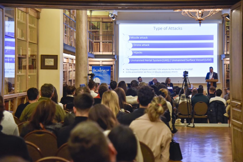 Η επιμορφωτική συνάντηση εκκίνησε με την παρουσίαση των ευρημάτων πρόσφατης έρευνας των Δρος Νικολάου Μπερκέτη και Δρος Απόστολου Παπαχρήστου αναφορικά με τις επιθέσεις των Χούθι σε εμπορικά πλοία. Το δείγμα αποτελούνταν από 111 καταγεγραμμένες επιθέσεις με drone και πυραύλους εναντίον εμπορικών πλοίων για το χρονικό διάστημα Νοέμβριος 2023 – Ιούλιος 2024. Σύμφωνα με τα ευρήματα, οι επιθέσεις κατανέμονται σε δύο κύριες ομάδες με βάση την ημερομηνία επίθεσης και την ηλικία του πλοίου. Παράλληλα, από την έρευνα προκύπτει το συμπέρασμα ότι τα μεγαλύτερα σε ηλικία και μικρότερα σε χωρητικότητα πλοία έχουν αυξημένες πιθανότητες να δεχτούν πυραυλικές επιθέσεις (συγκριτικά με επιθέσεις με drone). Από την άλλη, δεξαμενόπλοια και containerships είναι λιγότερο πιθανό να δεχτούν πυραυλική επίθεση σε σχέση με τα bulk carriers. Σε κάθε περίπτωση, οι ερευνητές υπογράμμισαν ότι για τη σαφή εξαγωγή συμπερασμάτων απαιτείται μεγαλύτερο δείγμα και ως εκ τούτου η έρευνα θα συνεχιστεί.