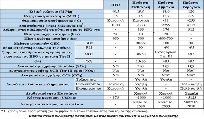 Πηγή: Ι. Α. Δουραλή (2024). Συγκριτική μελέτη καυσίμων με μηδενικό αποτύπωμα για εφαρμογή στη Ναυτιλία και την Ηλεκτροπαραγωγή (Μεταπτυχιακή εργασία). Ελληνικό Ανοικτό Πανεπιστήμιο, Πάτρα.