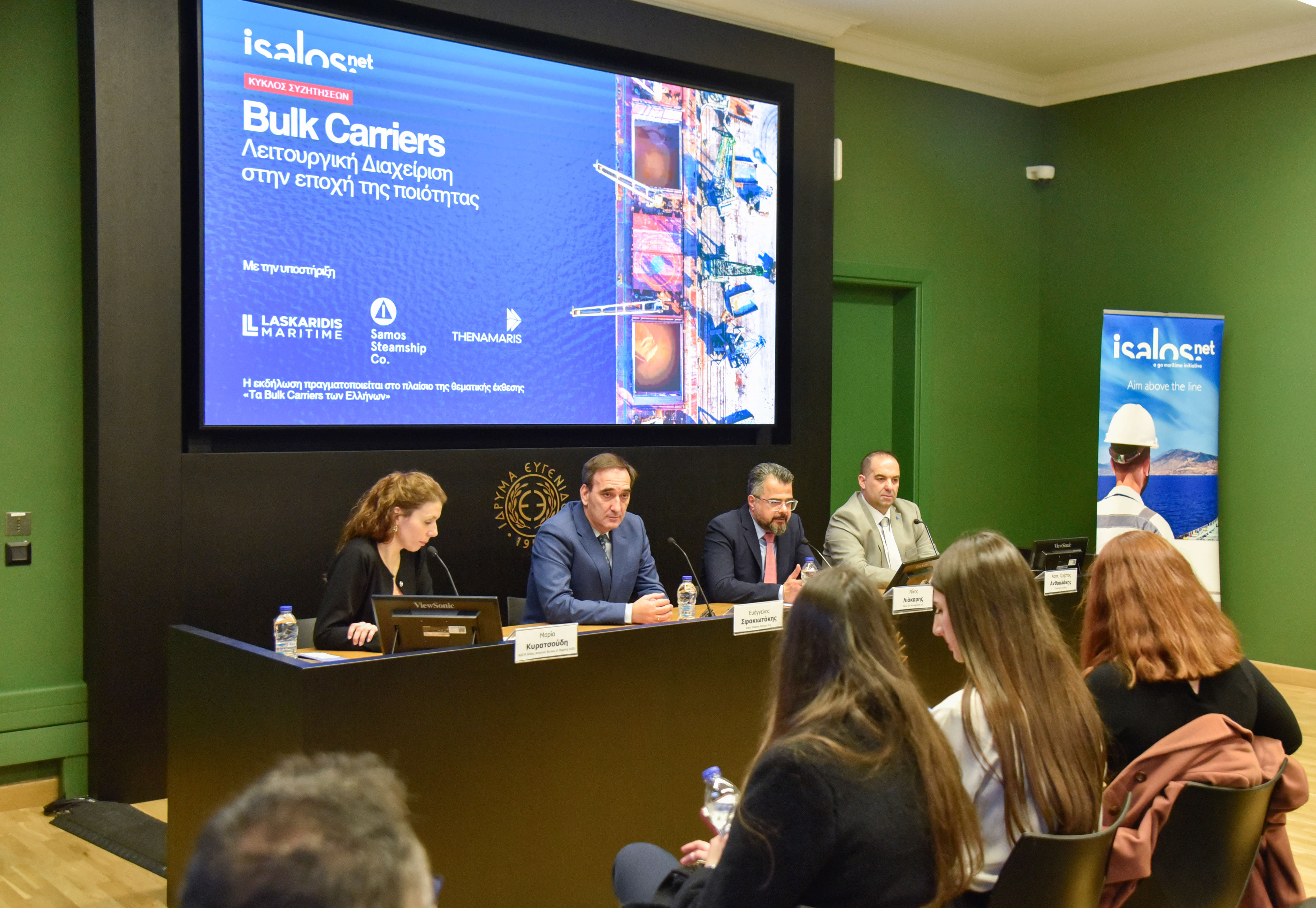 Με ιδιαίτερη επιτυχία ολοκληρώθηκαν την Τετάρτη 26 Φεβρουαρίου 2025 οι Κύκλοι Συζητήσεων της Isalos.net, στο πλαίσιο της έκθεσης «Τα Bulk Carriers των Ελλήνων», η οποία διοργανώνεται από την Isalos.net σε συνεργασία με το Ίδρυμα Ευγενίδου από τις 10 Φεβρουαρίου έως τις 7 Μαρτίου και τελεί υπό την αιγίδα της INTERCARGO.