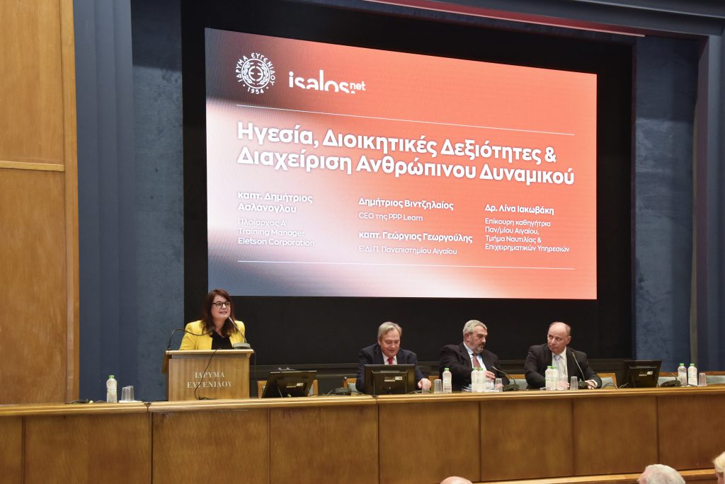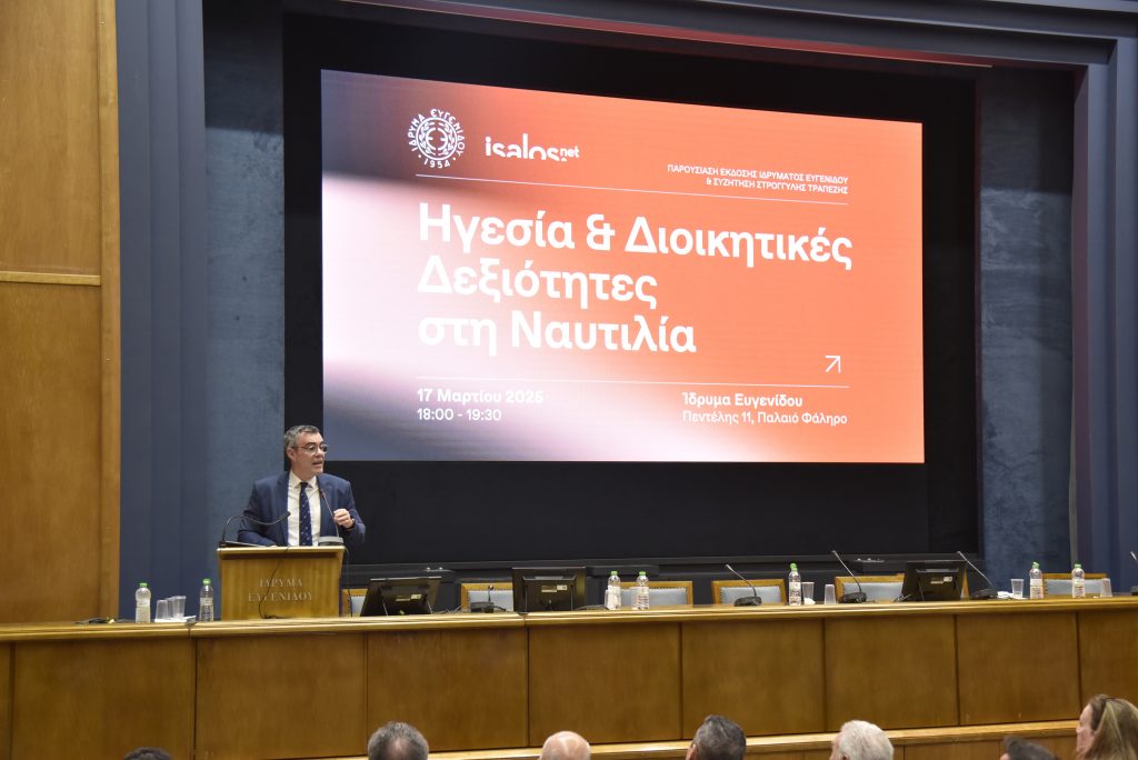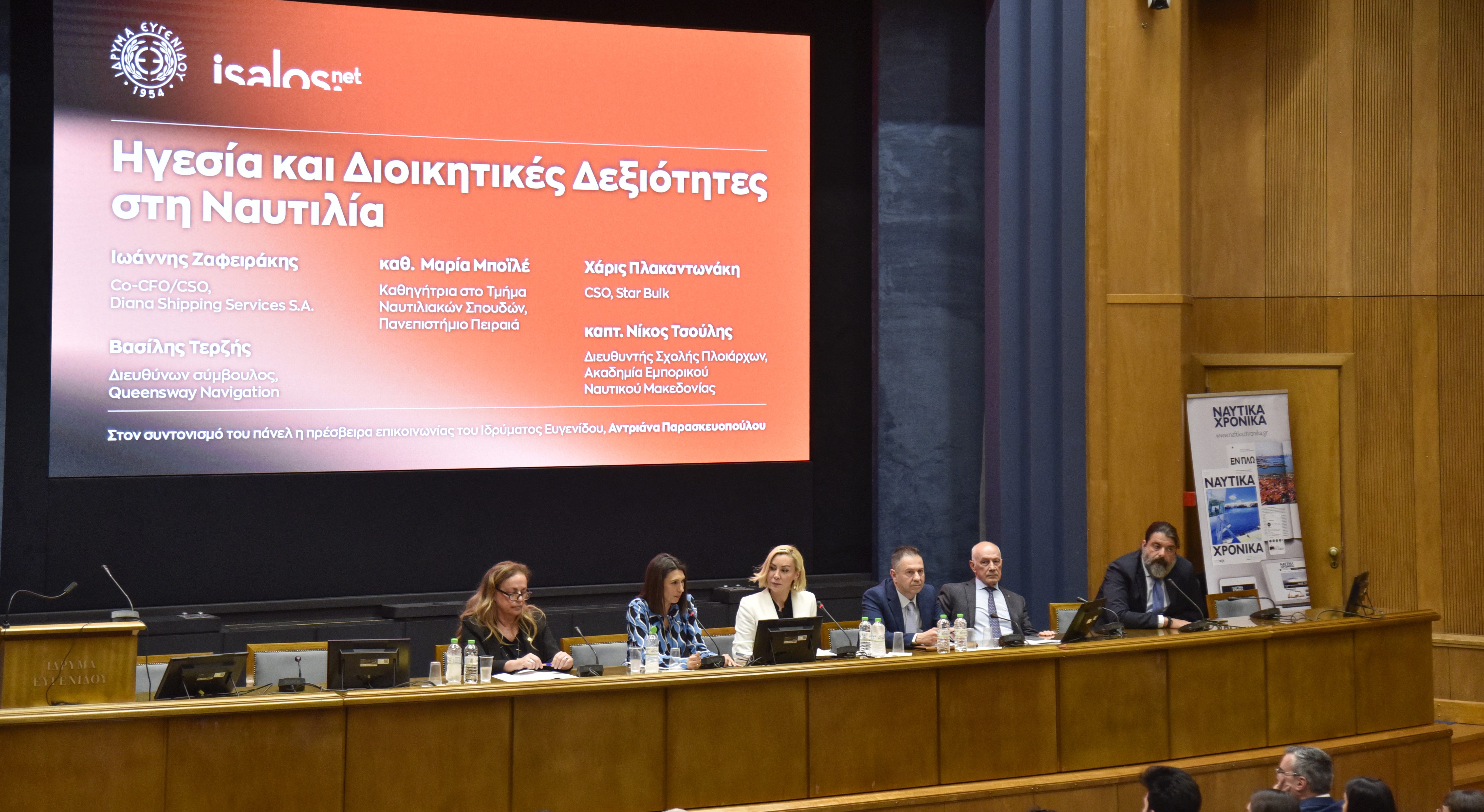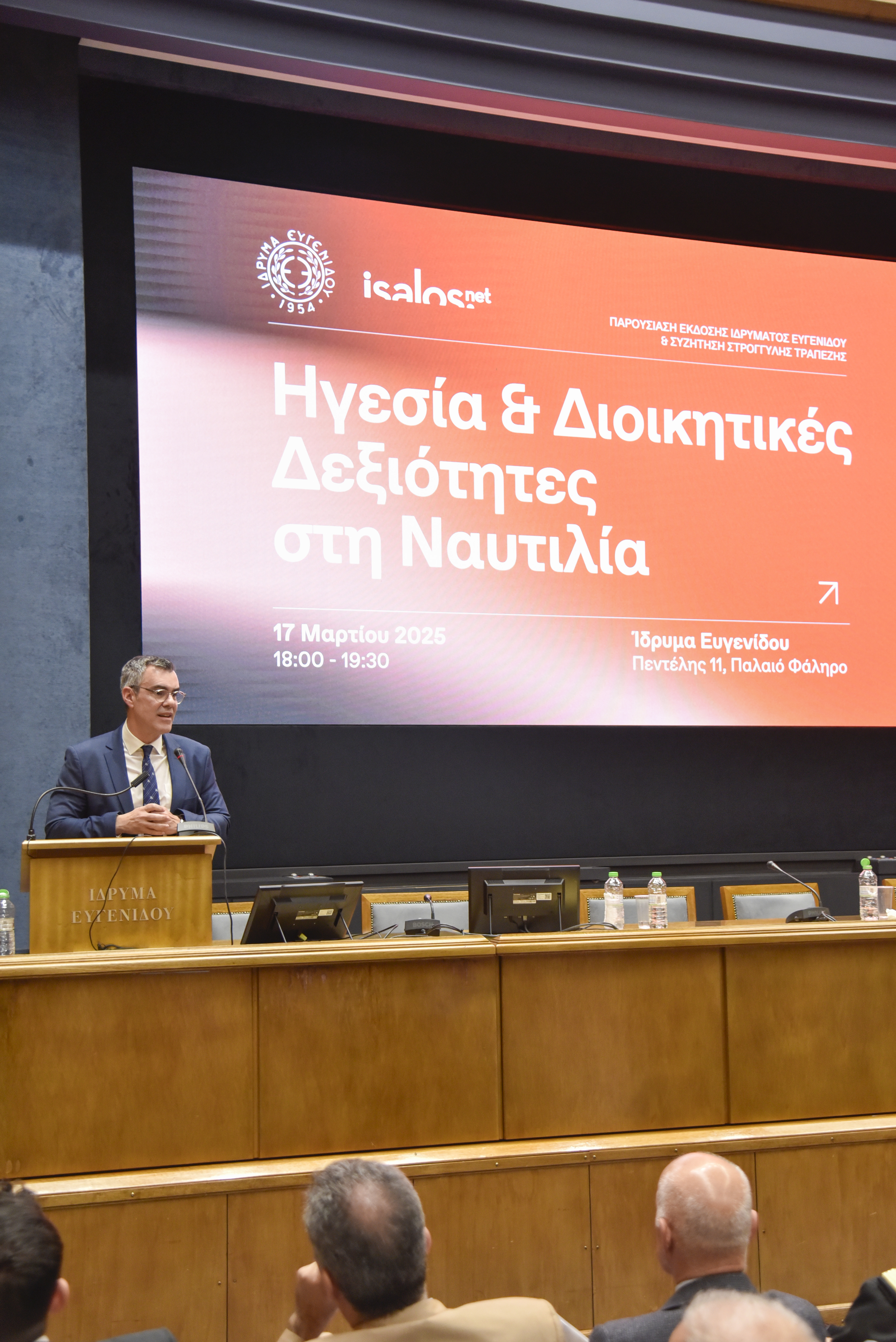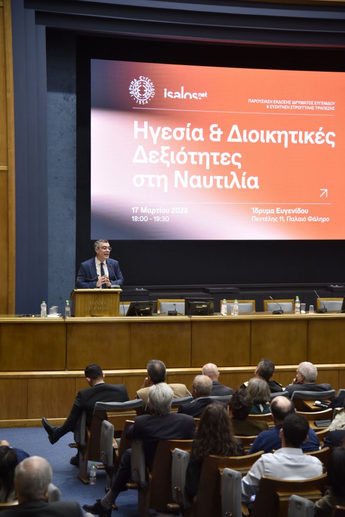 Τη Δευτέρα 17 Μαρτίου 2025 έλαβε χώρα η εκδήλωση με τίτλο «Ηγεσία και Διοικητικές Δεξιότητες στη Ναυτιλία», η οποία διοργανώθηκε από την Isalos.net σε συνεργασία με το Ίδρυμα Ευγενίδου. Εν λόγω εκδήλωση που πραγματοποιήθηκε στο Αμφιθέατρο του Ιδρύματος Ευγενίδου, στο πλαίσιο της παρουσίασης της νέας εκπαιδευτικής έκδοσης του Ιδρύματος με τίτλο: «Ηγεσία: Διοικητικές Δεξιότητες και Διαχείριση Ανθρωπίνου Δυναμικού».
