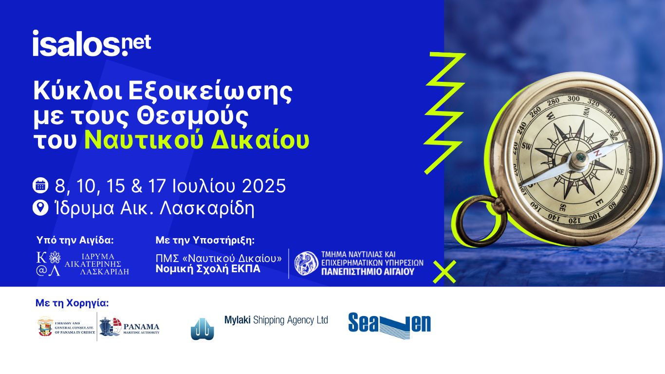 Η Isalos.net με την υποστήριξη του ΠΜΣ «Ναυτικού Δικαίου» της Νομικής Σχολής ΕΚΠΑ, και του Τμήματος Ναυτιλίας και Επιχειρηματικών Υπηρεσιών του Πανεπιστημίου Αιγαίου, διοργανώνει σειρά θερινών επιμορφωτικών εκδηλώσεων με τίτλο: «Κύκλοι Εξοικείωσης με τους Θεσμούς του Ναυτικού Δικαίου» και στόχο τη συναρμογή θεωρίας και πράξης.