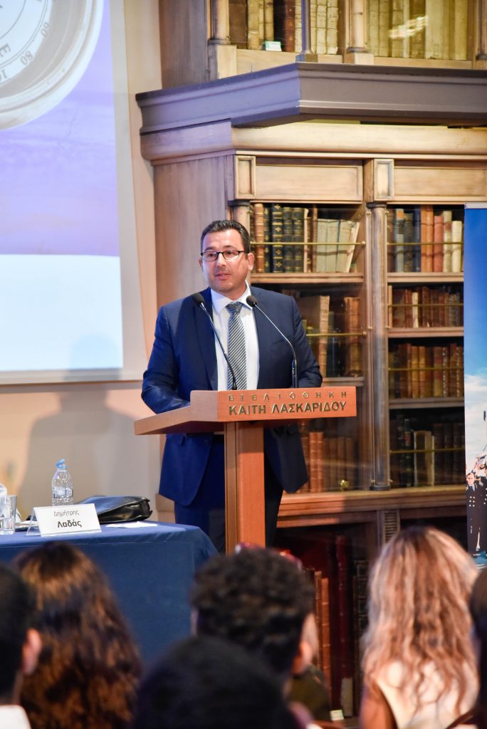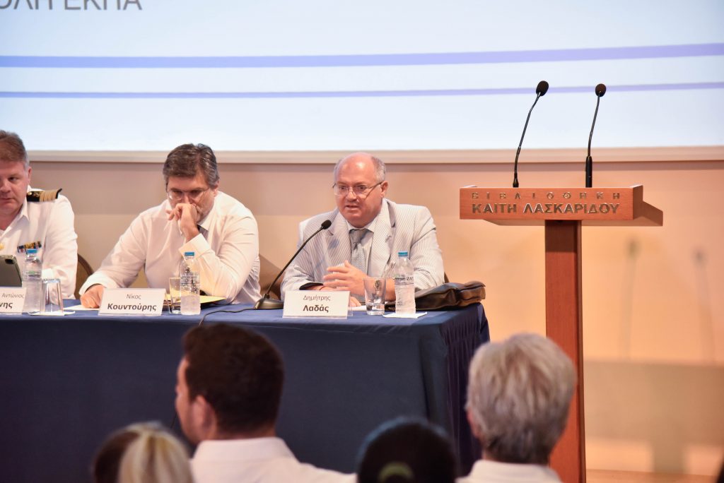 Χαιρετισμό απηύθυνε επίσης ο Πρόεδρος του Τμήματος Ναυτιλίας και Επιχειρηματικών Υπηρεσιών του Πανεπιστημίου Αιγαίου, Καθ. Σεραφείμ Κάπρος, ο οποίος από την πλευρά του τόνισε πως η ναυτιλία αποτελεί πεδίο εφαρμογής πολλών επιστημών, όπως τα οικονομικά, οι επιστήμες της διοίκησης, τα μαθηματικά και η στατιστική, η πληροφορική, η μηχανολογία, η νομική επιστήμη, καθώς και οι κοινωνικές και περιβαλλοντικές επιστήμες. Ως εκ τούτου, με τη ναυτιλία να αποτελεί έναν πολύπλευρο κλάδο, η επιστημονική υποστήριξη τέτοιου είδους επιμορφωτικών δράσεων και πρωτοβουλιών καθίσταται σημαντική παράμετρος για την καλλιέργεια ενός εποικοδομητικού διαλόγου εντός της ναυτιλιακής κοινότητας.