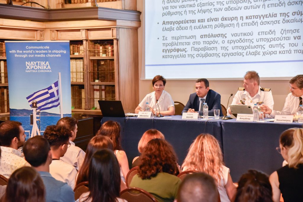 Οι εισηγήσεις από την πλευρά του πάνελ ολοκληρώθηκαν με την παρουσίαση του Δρος Γεωργίου Δανιήλ, Επ. Καθηγητή του Τμήματος Ναυτιλιακών Σπουδών του ΠΑΠΕΙ, με εξειδικευμένες γνώσεις σε θέματα ποινικού δικαίου, με τίτλο «Ποινικά ζητήματα από τη ναυτική εργασία». Ο κ. Δανιήλ παρουσίασε μελέτες περίπτωσης ποινικών αδικημάτων αλλά και ποινικών ευθυνών τόσο ναυτικών όσο και διαχειριστριών εταιρειών που τους ναυτολογούν.
