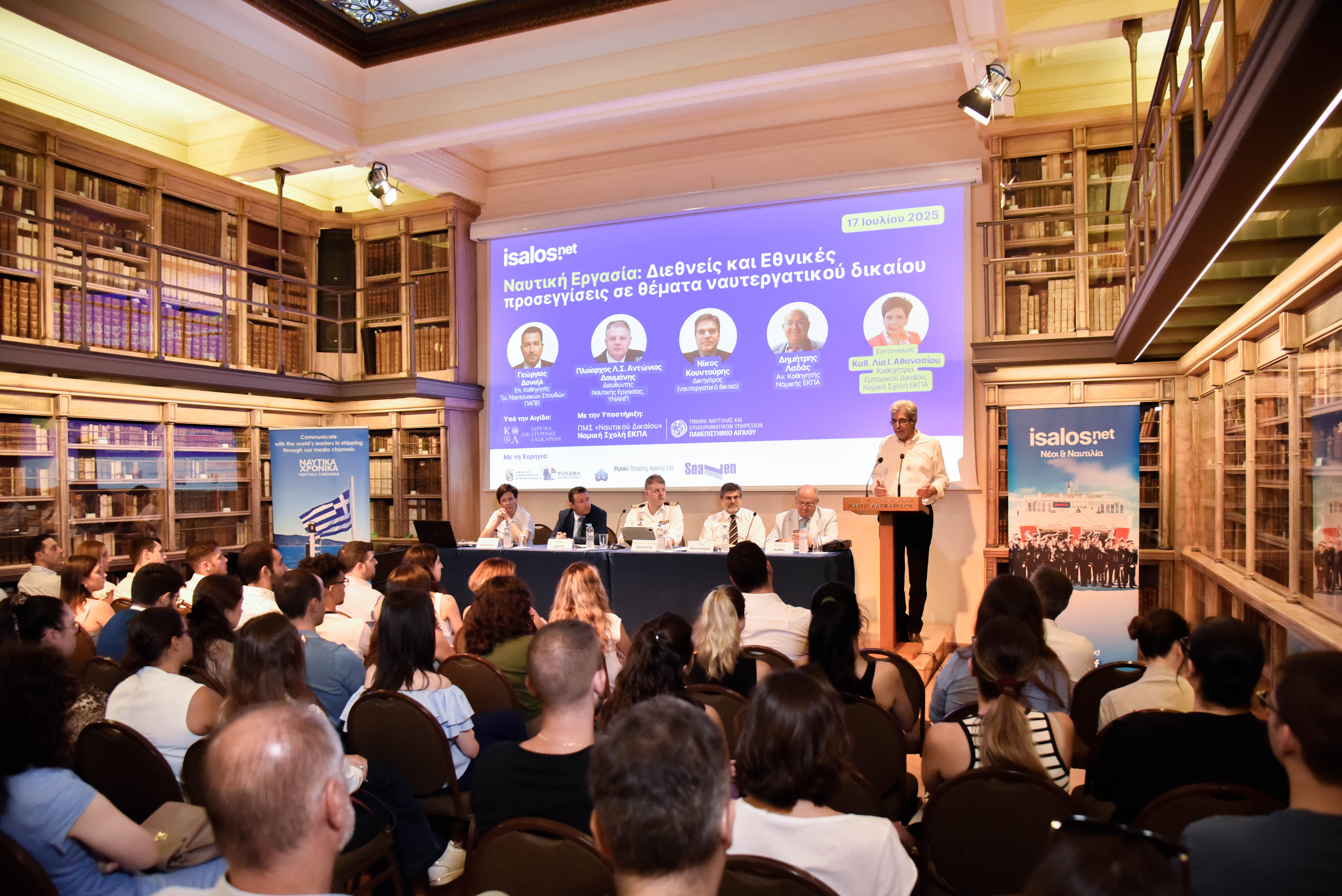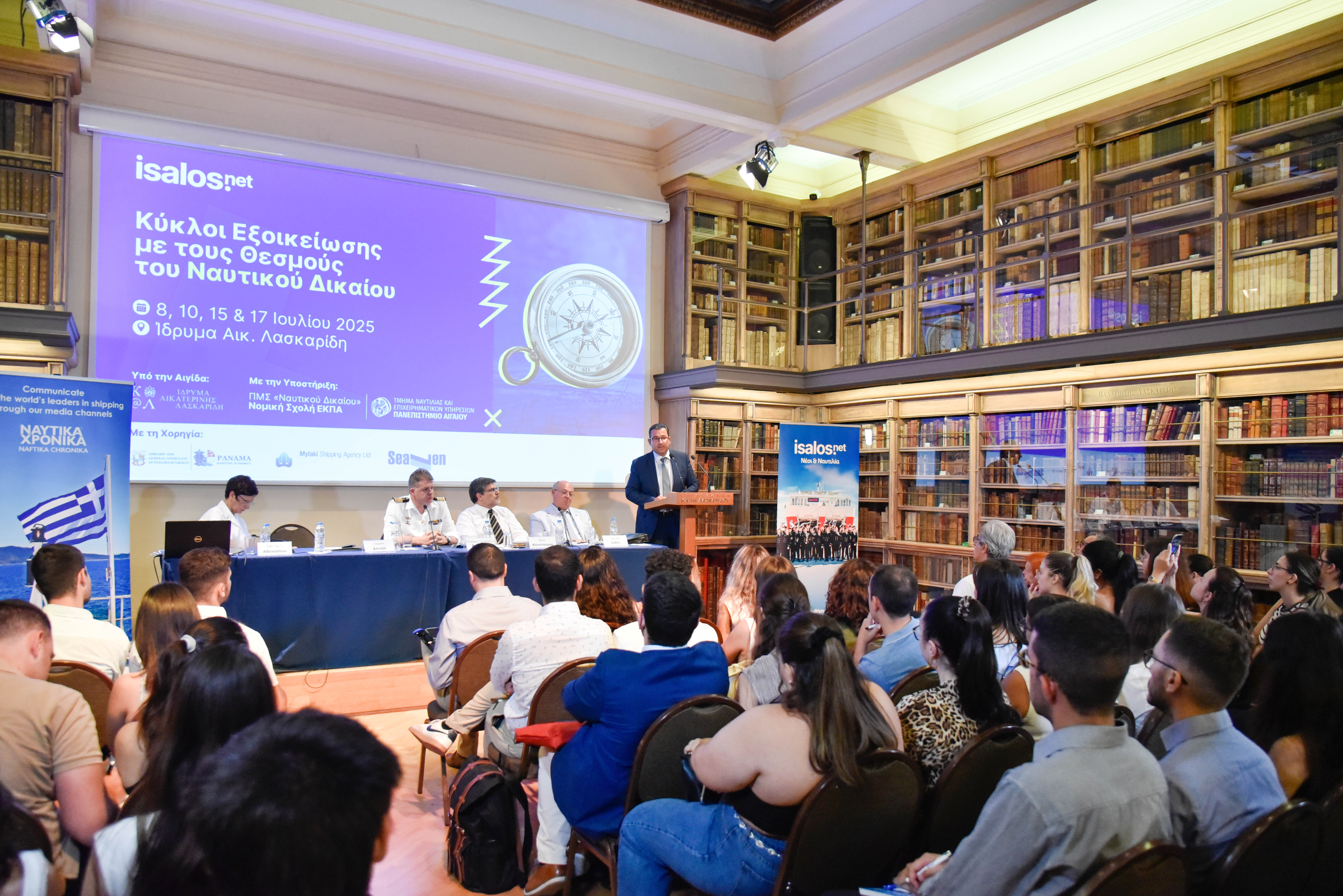 Την Πέμπτη 17 Ιουλίου 2025 πραγματοποιήθηκε το τέταρτο και τελευταίο σεμινάριο των «Κύκλων Εξοικείωσης με τους Θεσμούς του Ναυτικού Δικαίου», που διοργάνωσε η Isalos.net με την υποστήριξη του ΠΜΣ «Ναυτικού Δικαίου» της Νομικής Σχολής ΕΚΠΑ και του Τμήματος Ναυτιλίας και Επιχειρηματικών Υπηρεσιών του Πανεπιστημίου Αιγαίου, υπό την αιγίδα του Ιδρύματος Αικατερίνης Λασκαρίδη.