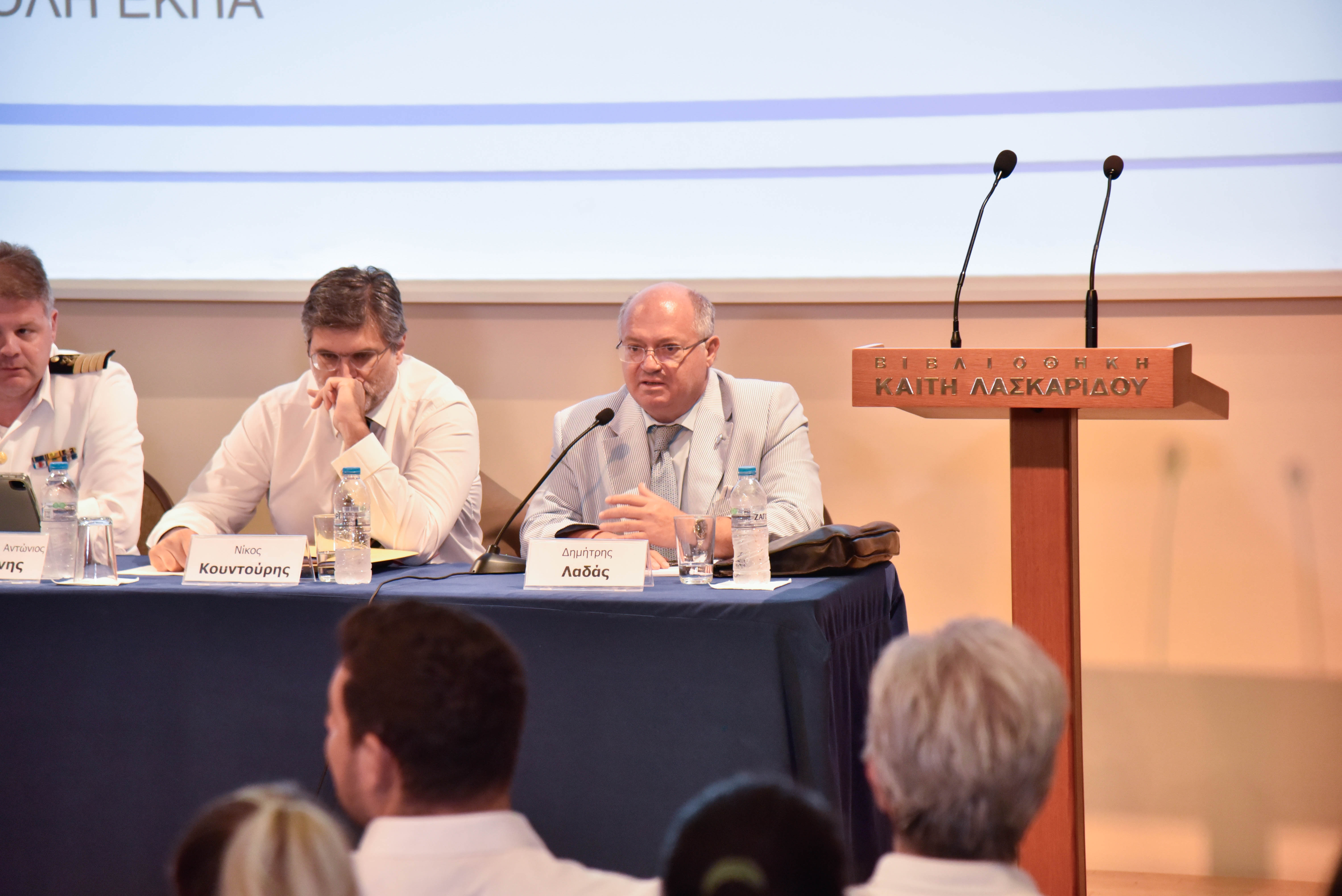Τη λήξη των εργασιών του τελευταίου σεμιναρίου των «Κύκλων Εξοικείωσης με τους Θεσμούς του Ναυτικού Δικαίου» ακολούθησε δεξίωση στον αύλειο χώρο της Ιστορικής Βιβλιοθήκης του Ιδρύματος Αικατερίνης Λασκαρίδη.