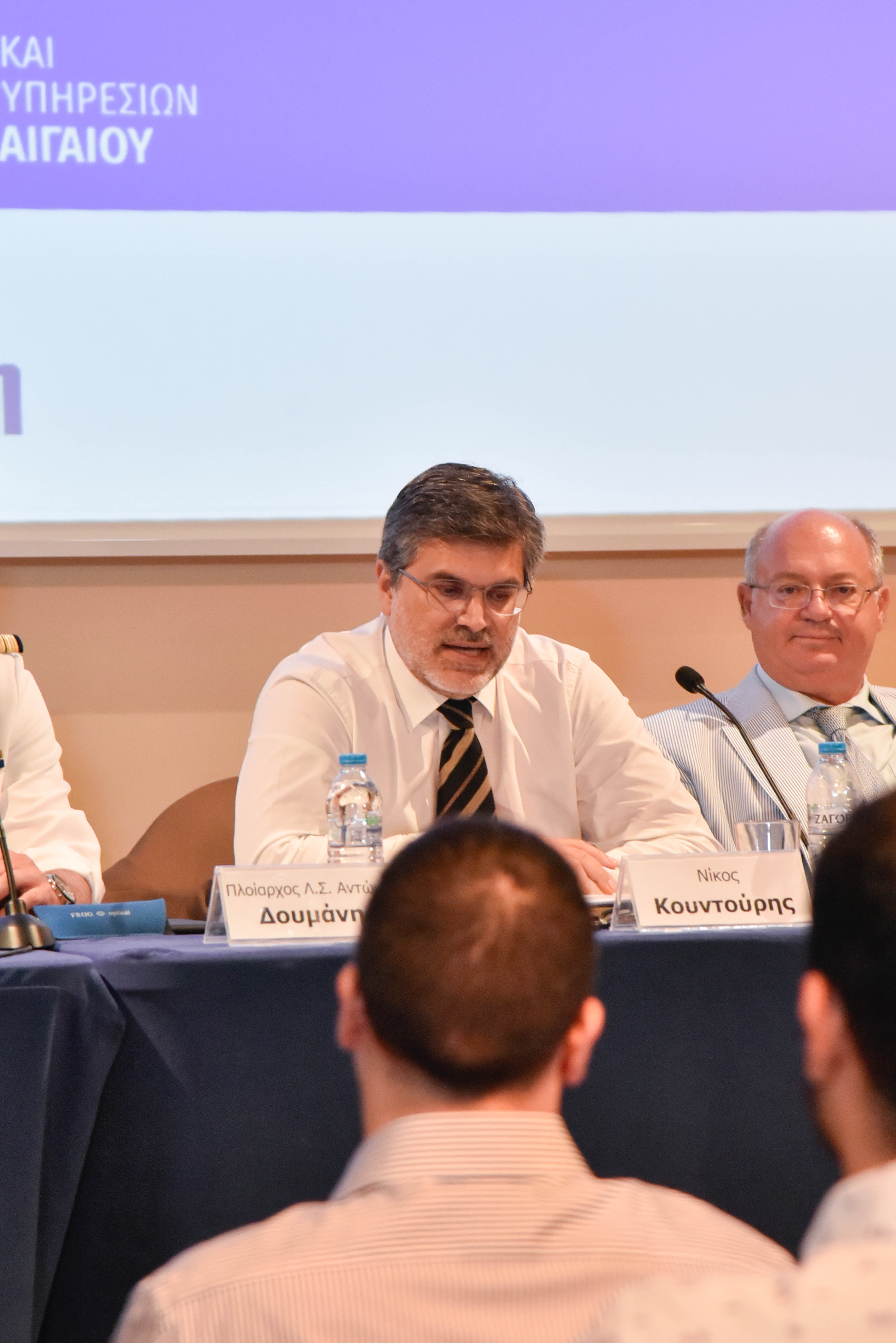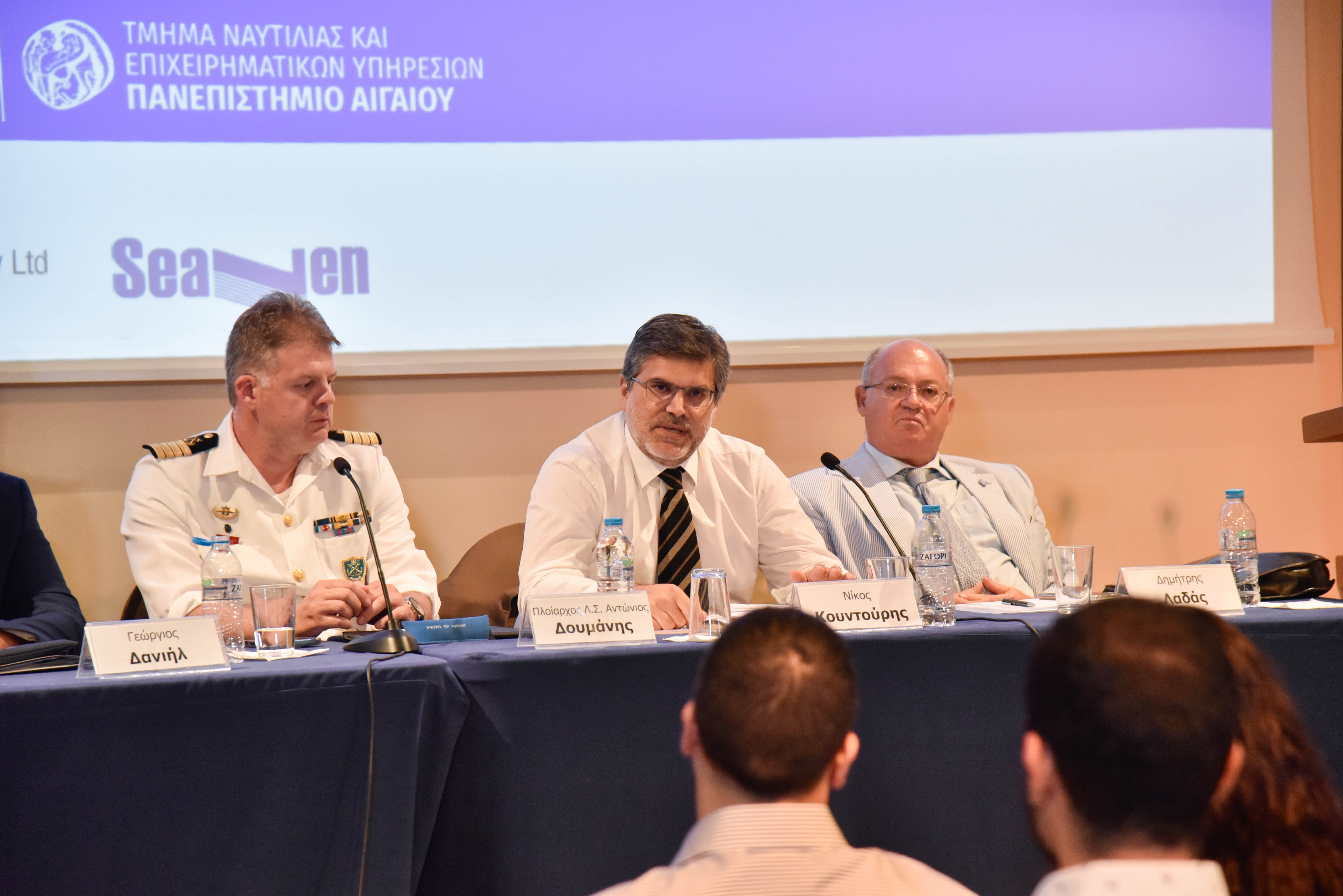 Χαιρετισμό απηύθυνε επίσης ο Πρόεδρος του Τμήματος Ναυτιλίας και Επιχειρηματικών Υπηρεσιών του Πανεπιστημίου Αιγαίου, Καθ. Σεραφείμ Κάπρος, ο οποίος από την πλευρά του τόνισε πως η ναυτιλία αποτελεί πεδίο εφαρμογής πολλών επιστημών, όπως τα οικονομικά, οι επιστήμες της διοίκησης, τα μαθηματικά και η στατιστική, η πληροφορική, η μηχανολογία, η νομική επιστήμη, καθώς και οι κοινωνικές και περιβαλλοντικές επιστήμες. Ως εκ τούτου, με τη ναυτιλία να αποτελεί έναν πολύπλευρο κλάδο, η επιστημονική υποστήριξη τέτοιου είδους επιμορφωτικών δράσεων και πρωτοβουλιών καθίσταται σημαντική παράμετρος για την καλλιέργεια ενός εποικοδομητικού διαλόγου εντός της ναυτιλιακής κοινότητας.