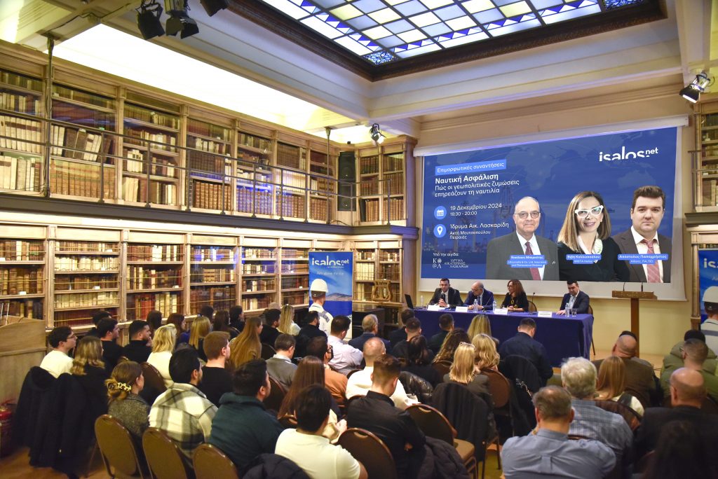 Οι επιμορφωτικές διαλέξεις της Isalos.net για το ακαδημαϊκό έτος 2024-2025, συνεχίστηκαν με την εκδήλωση «Ναυτική Ασφάλιση: Πώς οι γεωπολιτικές ζυμώσεις επηρεάζουν τη ναυτιλία», που έλαβε χώρα την Πέμπτη 19 Δεκεμβρίου στο Ίδρυμα Αικ. Λασκαρίδη. H εκδήλωση επικεντρώθηκε στις πρόσφατες γεωπολιτικές εξελίξεις και στον αντίκτυπό τους στην αγορά ναυτασφαλίσεων.