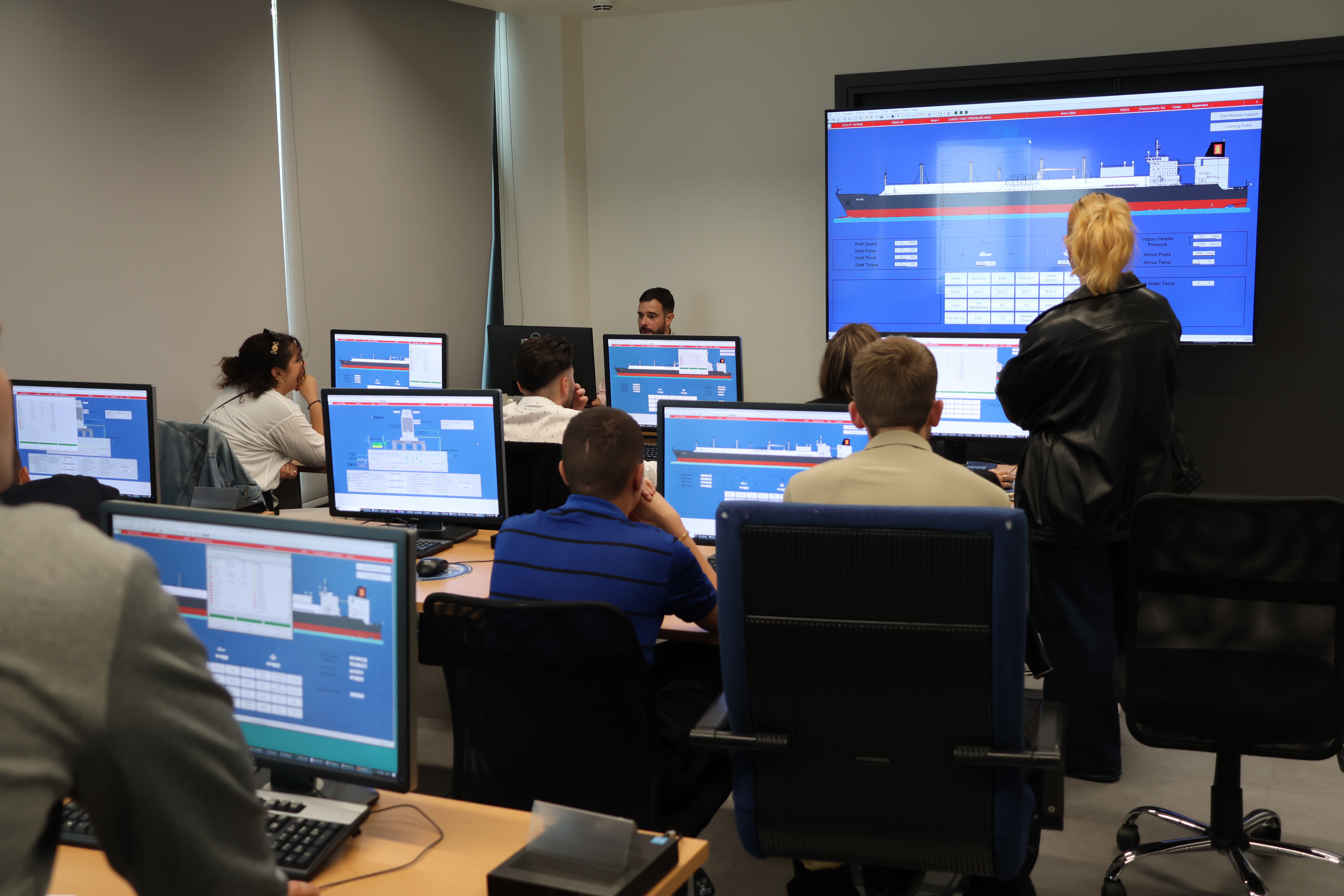 Χάρη στη θερμή φιλοξενία της Kongsberg Maritime Hellas, οι συμμετέχοντες/ουσες γνώρισαν τεχνολογίες αιχμής που εφαρμόζονται αυτή τη στιγμή στη ναυτιλιακή βιομηχανία, μέσα από μια σειρά εξειδικευμένων παρουσιάσεων και πρακτικών επιδείξεων. Οι θεματικές τους επικεντρώθηκαν σε συστήματα πρόωσης, αυτοματισμών και ελέγχου, με έμφαση στην αποδοτικότητα, στην ασφάλεια και στη βιωσιμότητα των εμπορικών πλοίων του παγκόσμιου στόλου.