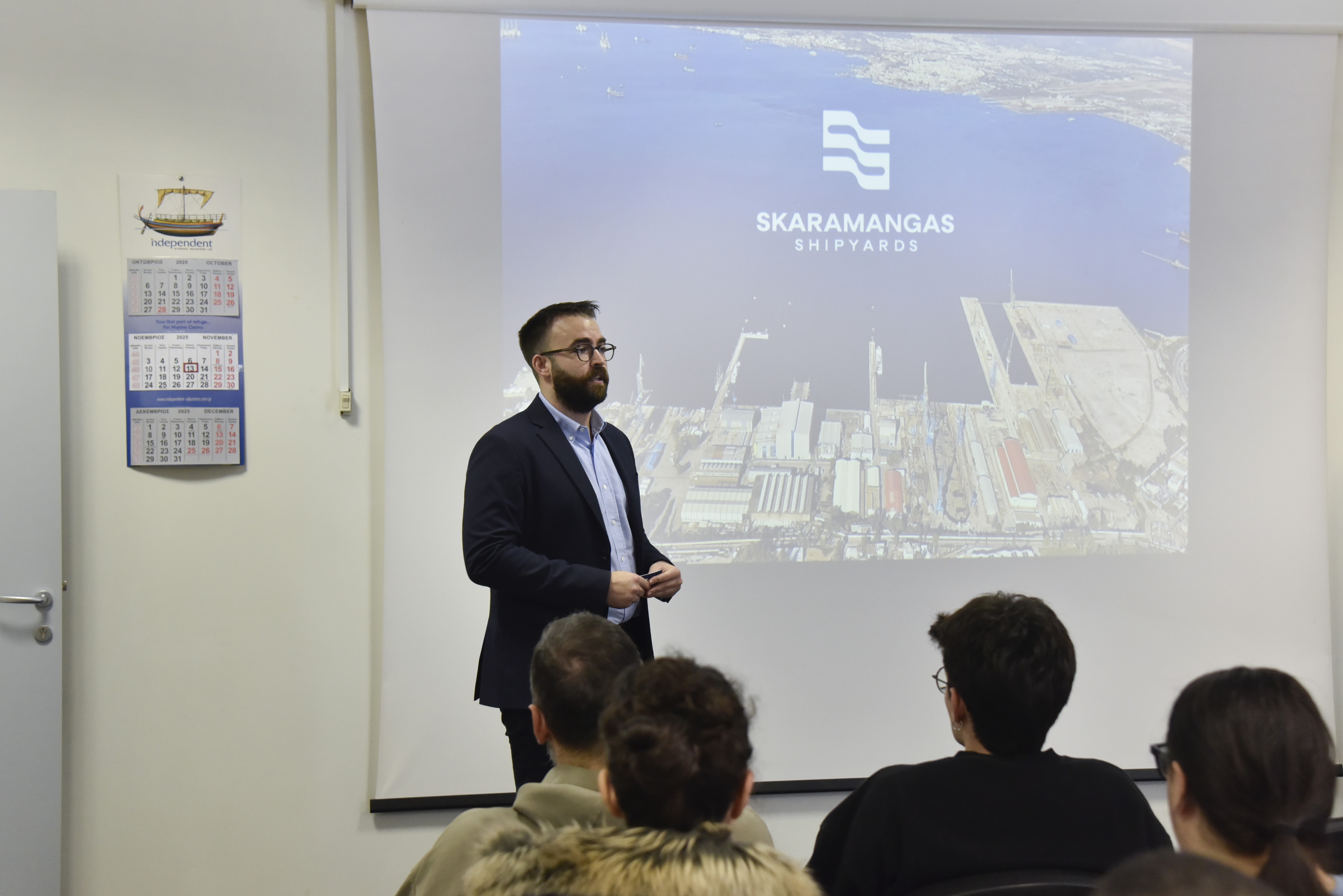 Το συγκεκριμένο σκέλος της επίσκεψης της Isalos.net ολοκληρώθηκε με μια σύντομη παρουσίαση από την κ. Στεφανία Δούκα, Senior Mechanical Engineer της εταιρείας DK Fotinakis, η οποία αναφέρθηκε στον ρόλο και στις υπηρεσίες που παρέχει ένα τεχνικό γραφείο/εταιρεία επισκευών, στις συχνότερες αιτίες που οδηγούν στην επισκευή ενός πλοίου, αλλά και στα βήματα και στις εργασίες που ακολουθούνται εντός μιας γιάρδας.