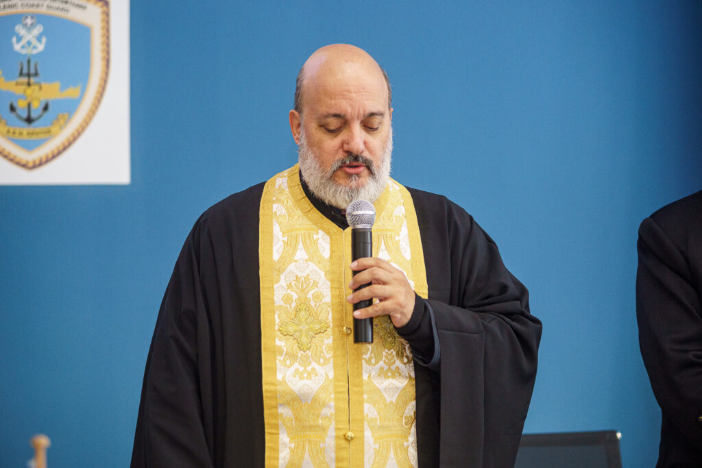 Στους εναρκτήριους χαιρετισμούς τους οποίους συντόνισε η Σημαιοφόρος ΛΣ, Χριστονύμφη Δανδουλάκη, παρευρέθηκαν επίσης ο πρώην Διευθυντής της Σχολής Πλοιάρχων, Δημήτριος Κασελάκης και ο πρώην καθηγητής της Σχολής Αντώνης Τζαγκαράκης.