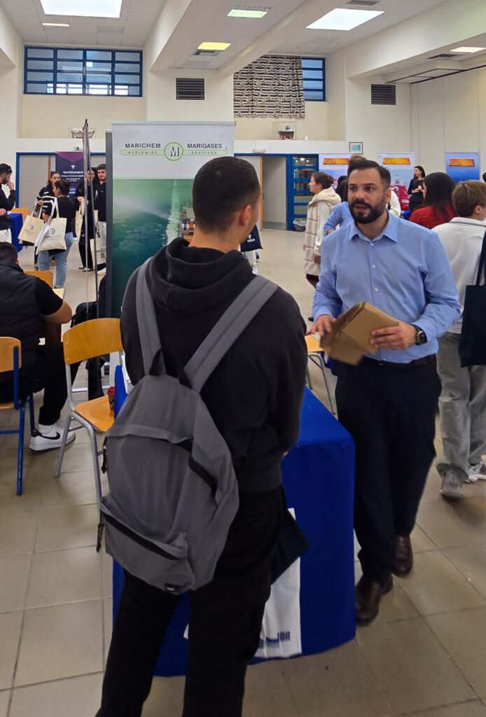 Παράλληλα, σε ειδικά διαμορφωμένο χώρο φιλοξενήθηκαν ειδικά περίπτερα ενημέρωσης (desks) των εταιρειών που συμμετείχαν κατ’ αυτόν τον τρόπο στην ημερίδα, όπου το σύνολο των σπουδαστών και σπουδαστριών, είχαν την ευκαιρία να γνωρίσουν και να συζητήσουν με τους εκπροσώπους των εταιρειών.
