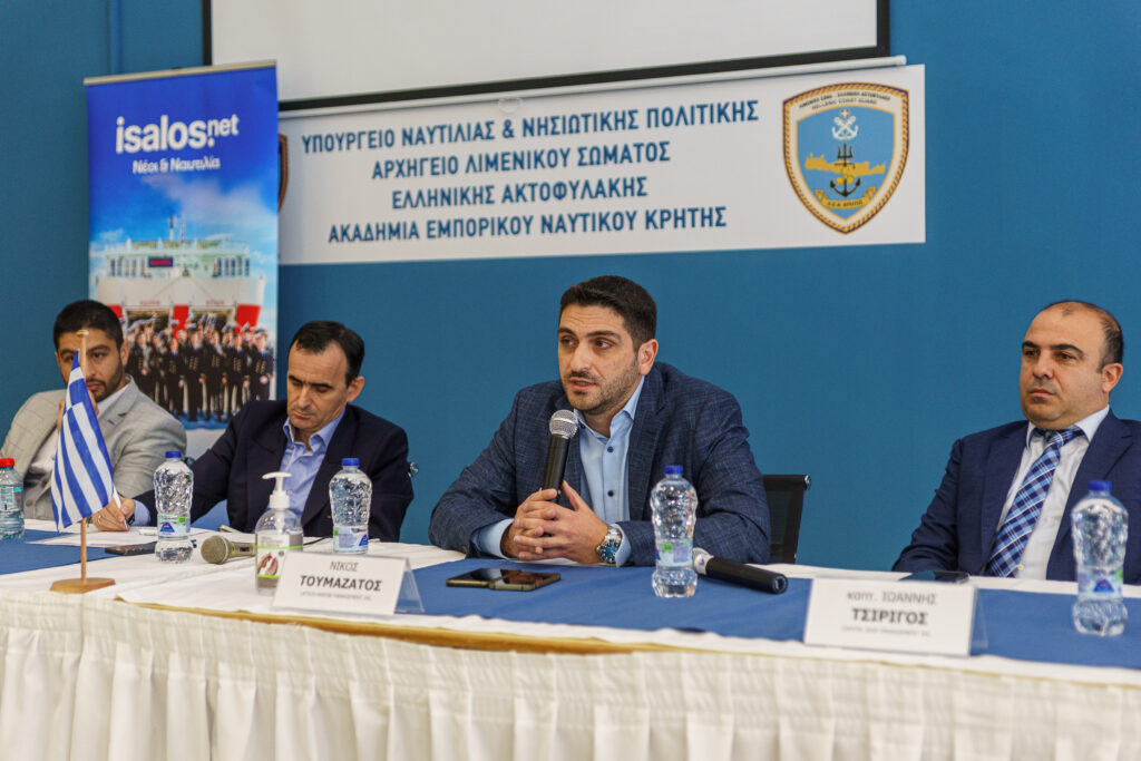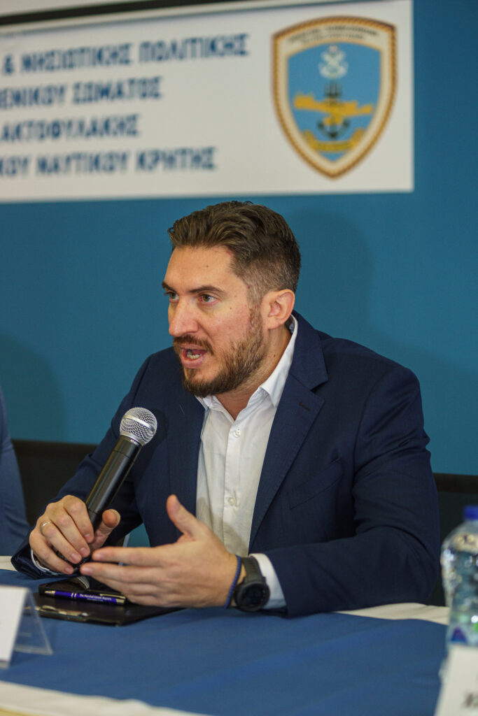 Στο ίδιο μήκος κύματος, και πριν ξεκινήσουν οι εργασίες της ημερίδας, εισαγωγικό χαιρετισμό πραγματοποίησαν ο πρώην Διοικητής της ΑΕΝ Κρήτης, Ναύαρχος ΛΣ (ε.α.), Ιωάννης Στεφανάκης, ο πρώην Διευθυντής Πλοιάρχων ΑΕΝ Κρήτης, Στυλιανός Φραντζεσκάκης, αλλά και ο δόκιμος Μηχανικός, Ανδρέας Σκουλάς, Αντιπρόεδρος του 9μελούς Συμβουλίου του Συλλόγου Σπουδαστών ΑΕΝ Κρήτης.