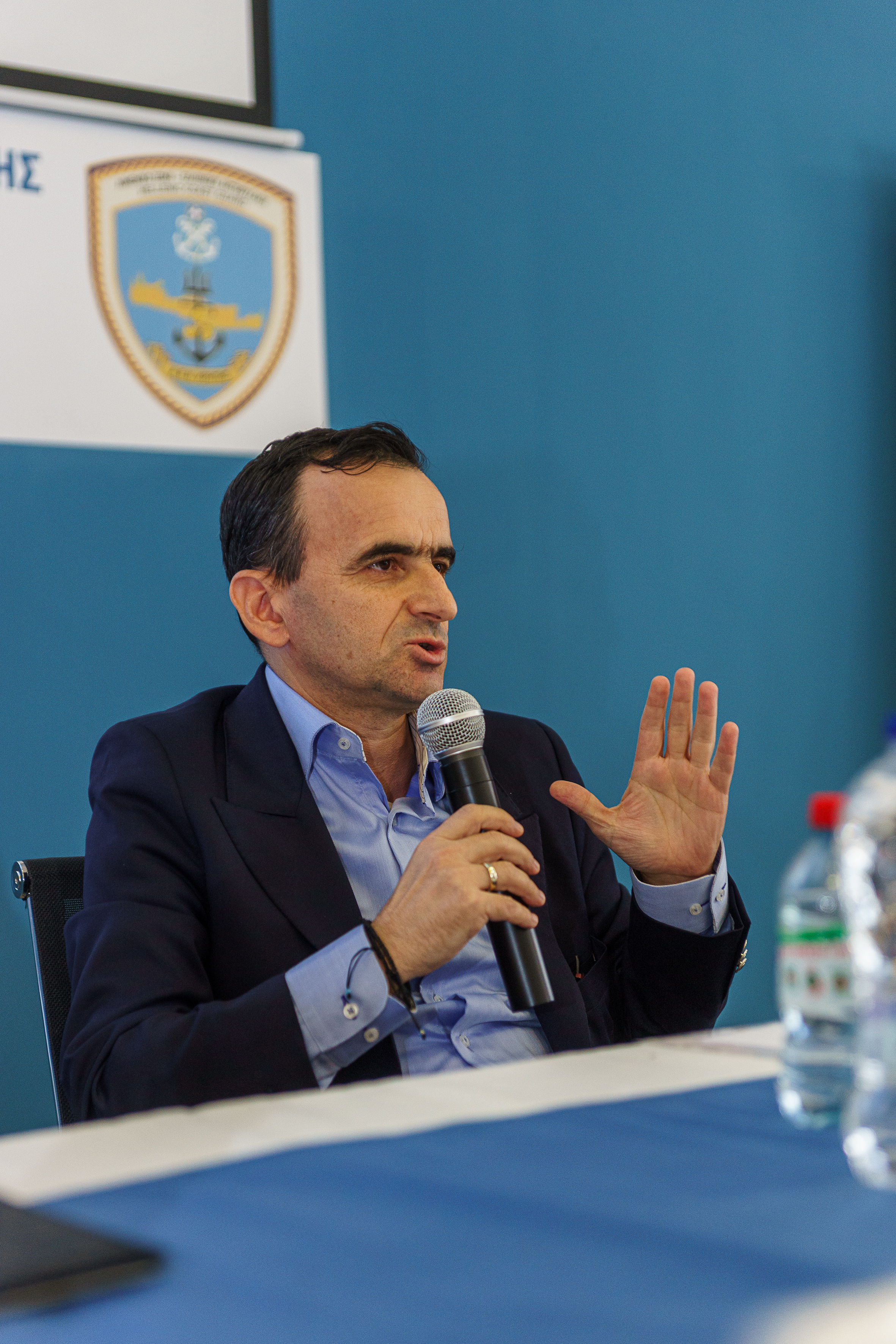Στο ίδιο μήκος κύματος, και πριν ξεκινήσουν οι εργασίες της ημερίδας, εισαγωγικό χαιρετισμό πραγματοποίησαν ο πρώην Διοικητής της ΑΕΝ Κρήτης, Ναύαρχος ΛΣ (ε.α.), Ιωάννης Στεφανάκης, ο πρώην Διευθυντής Πλοιάρχων ΑΕΝ Κρήτης, Στυλιανός Φραντζεσκάκης, αλλά και ο δόκιμος Μηχανικός, Ανδρέας Σκουλάς, Αντιπρόεδρος του 9μελούς Συμβουλίου του Συλλόγου Σπουδαστών ΑΕΝ Κρήτης.