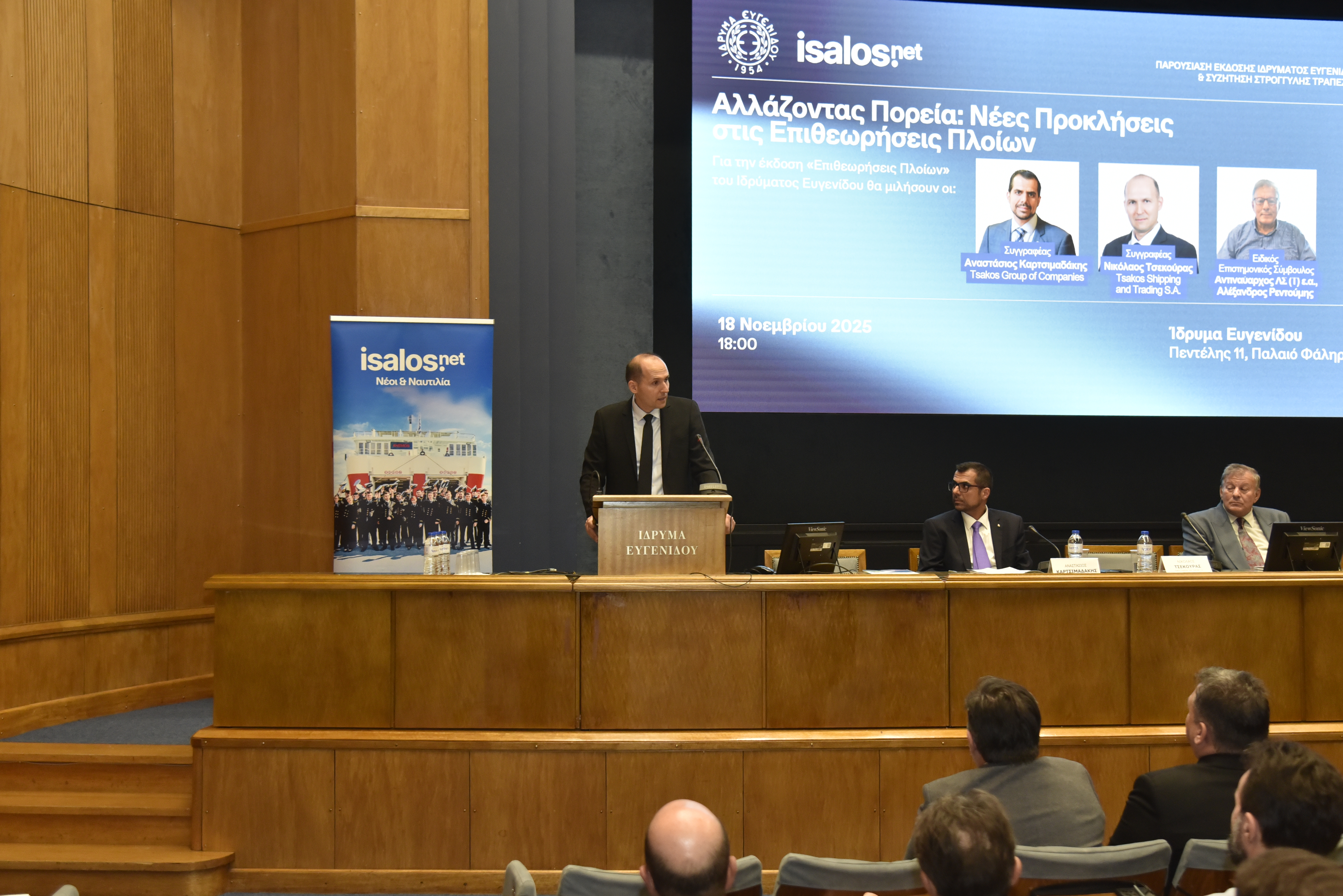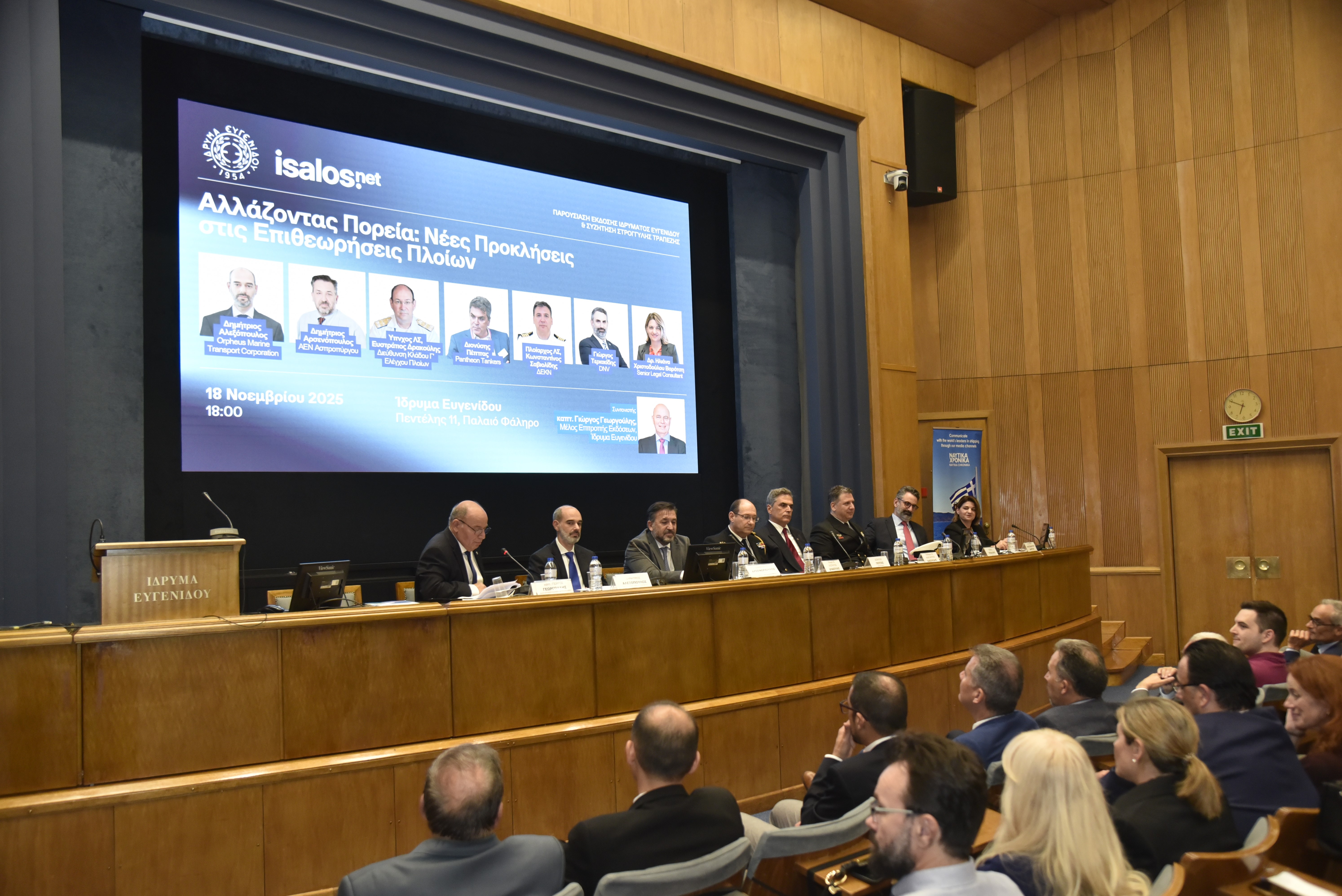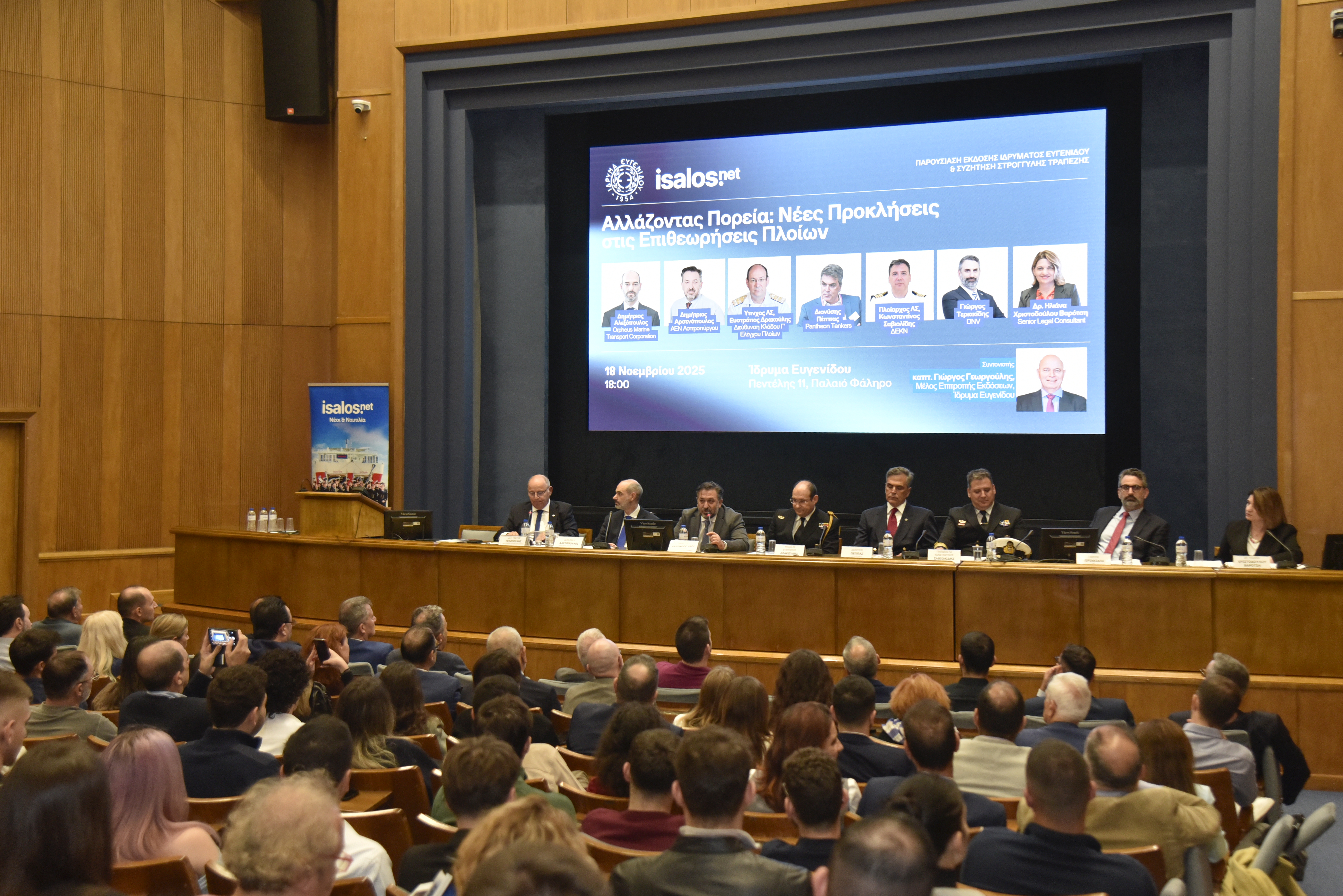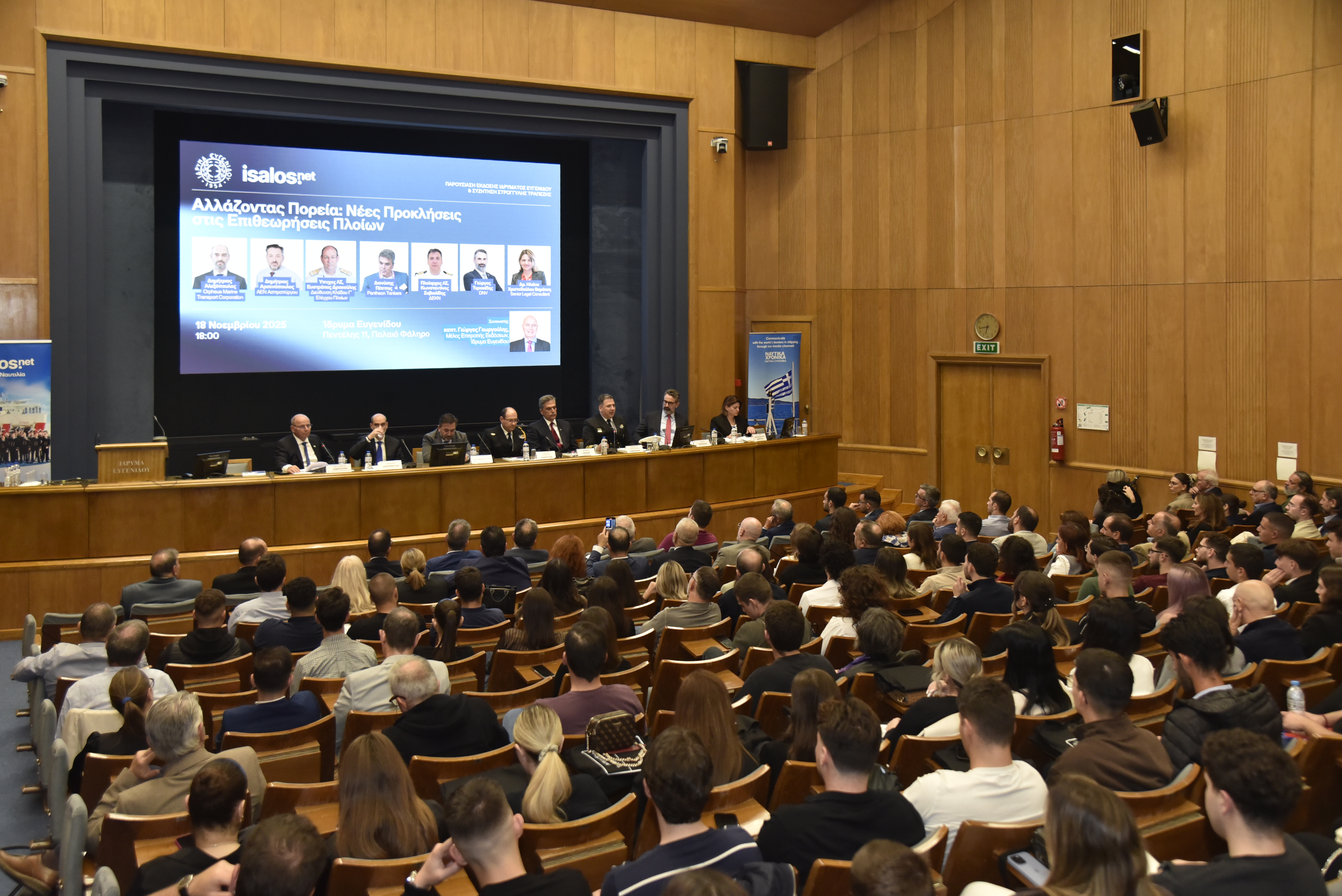Tην Τρίτη 18 Νοεμβρίου 2025 πραγματοποιήθηκε η εκδήλωση «Αλλάζοντας Πορεία: Νέες Προκλήσεις στις Επιθεωρήσεις Πλοίων», η οποία διοργανώθηκε από την Isalos.net και το Ίδρυμα Ευγενίδου και έλαβε χώρα στο Αμφιθέατρο του Ιδρύματος.