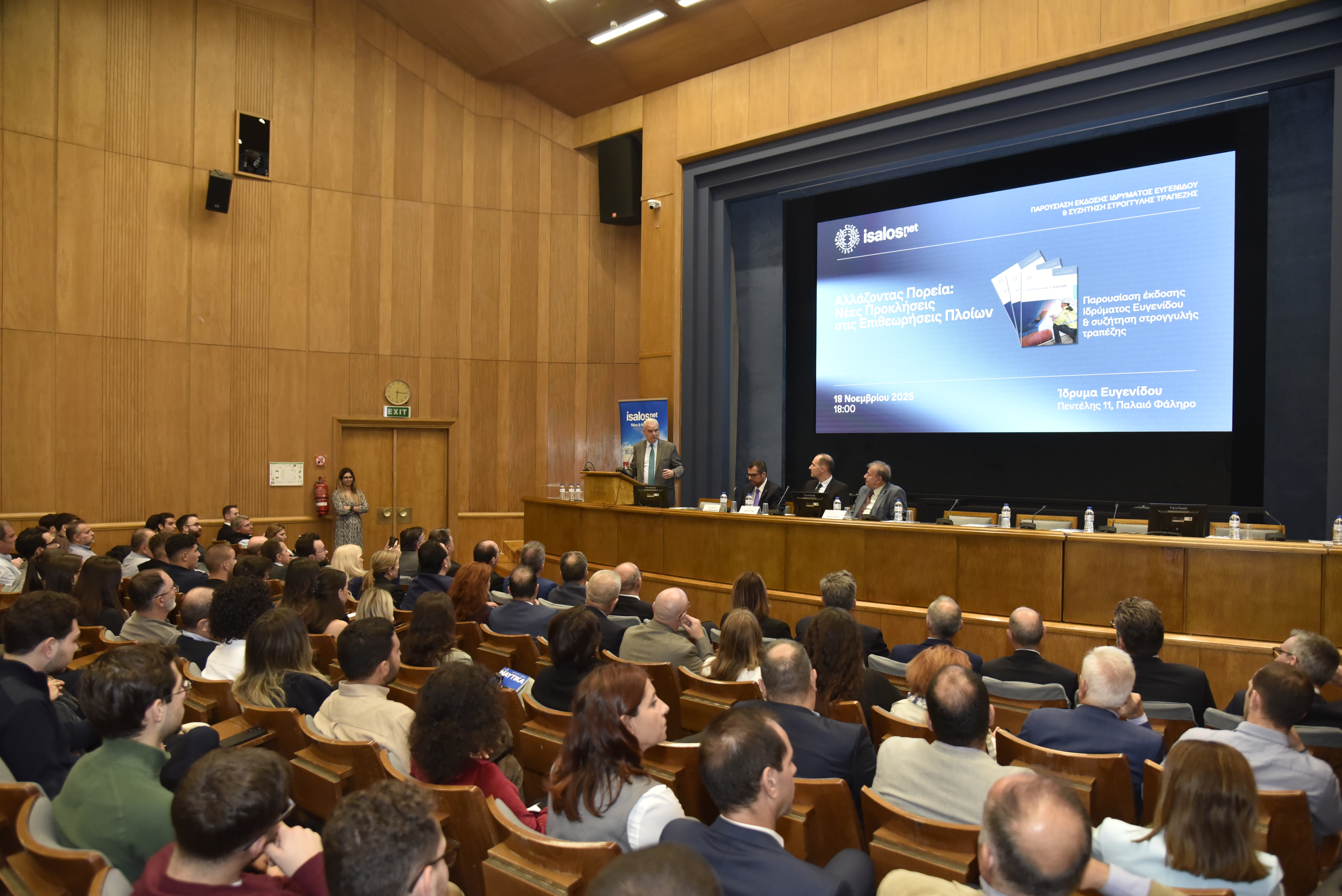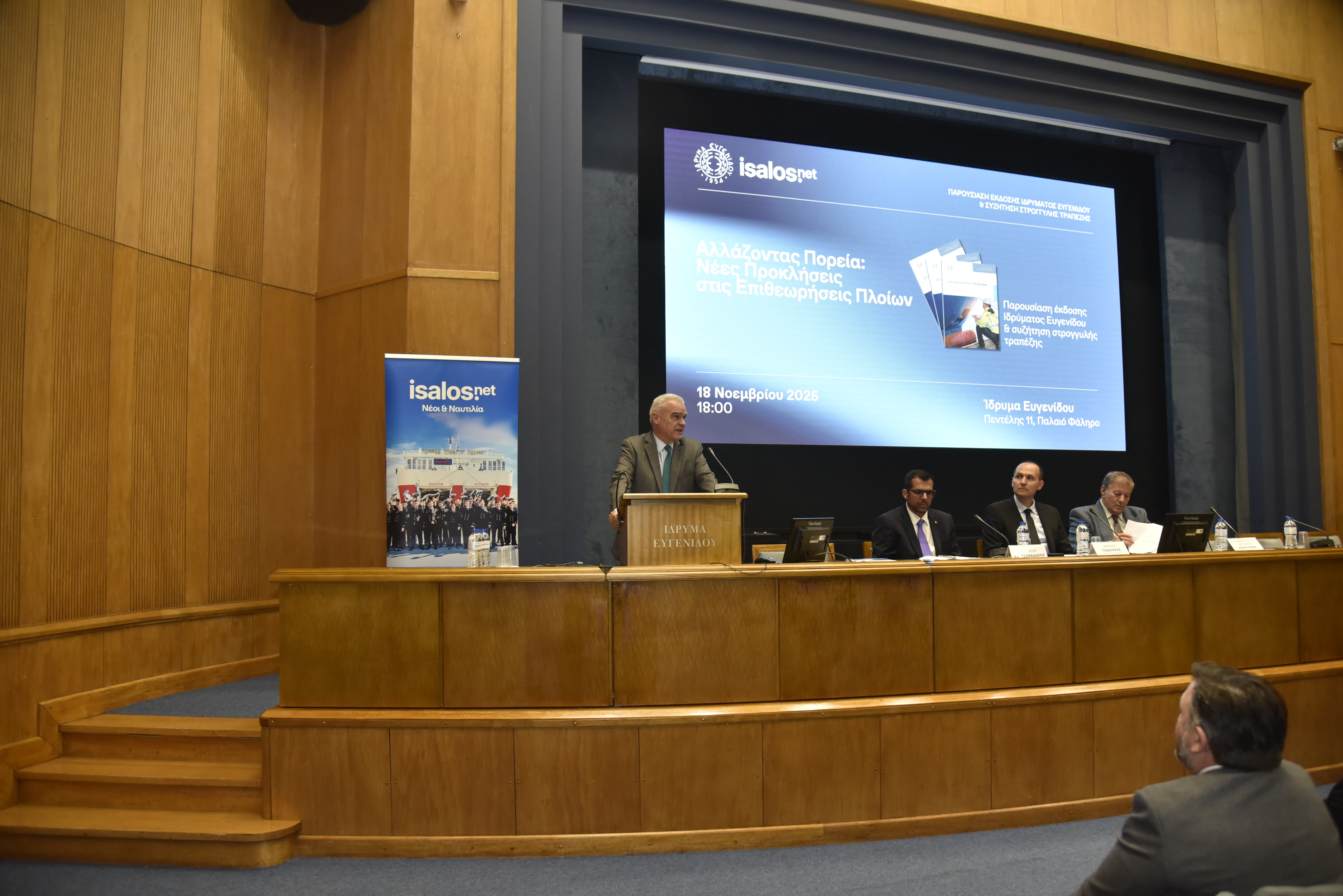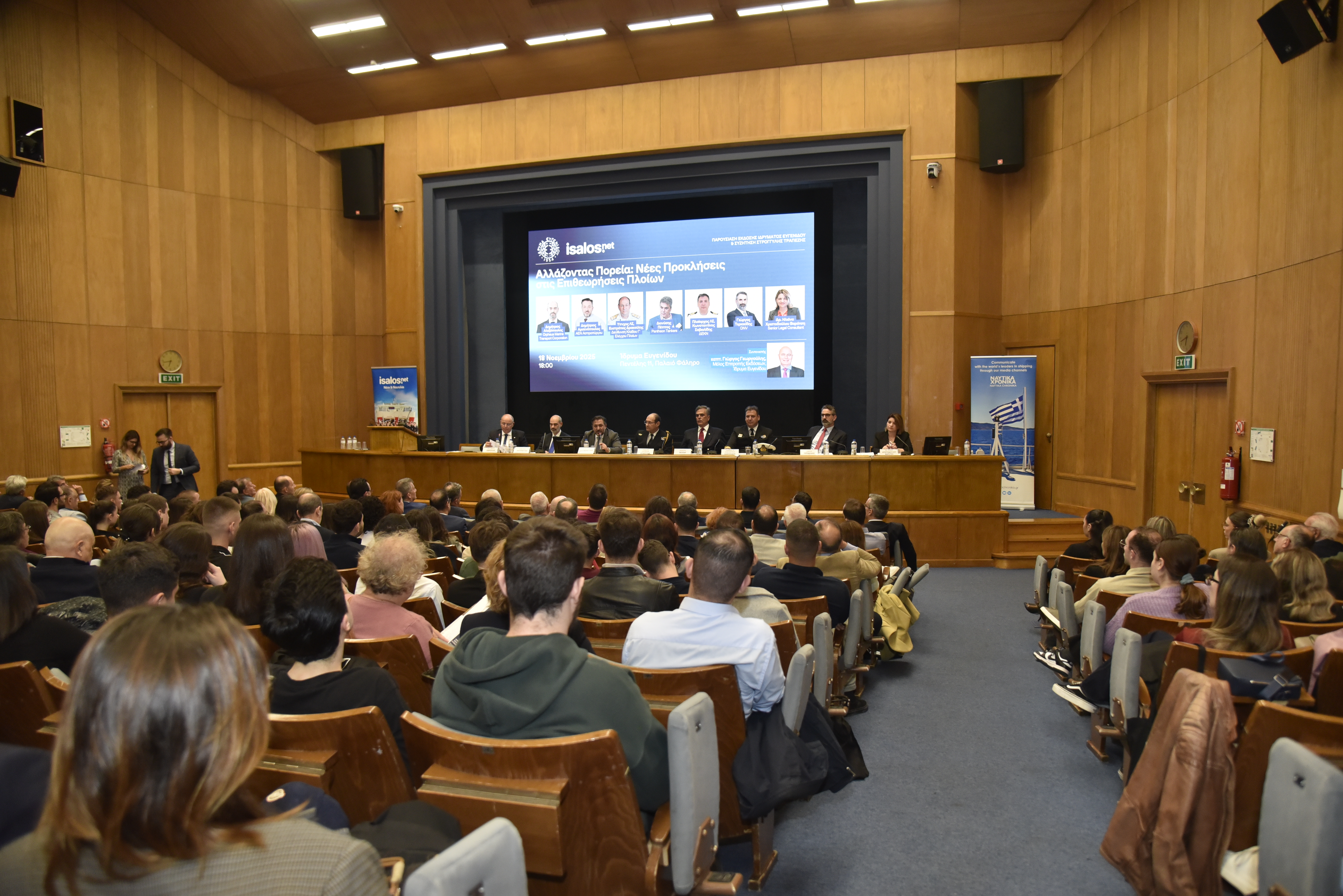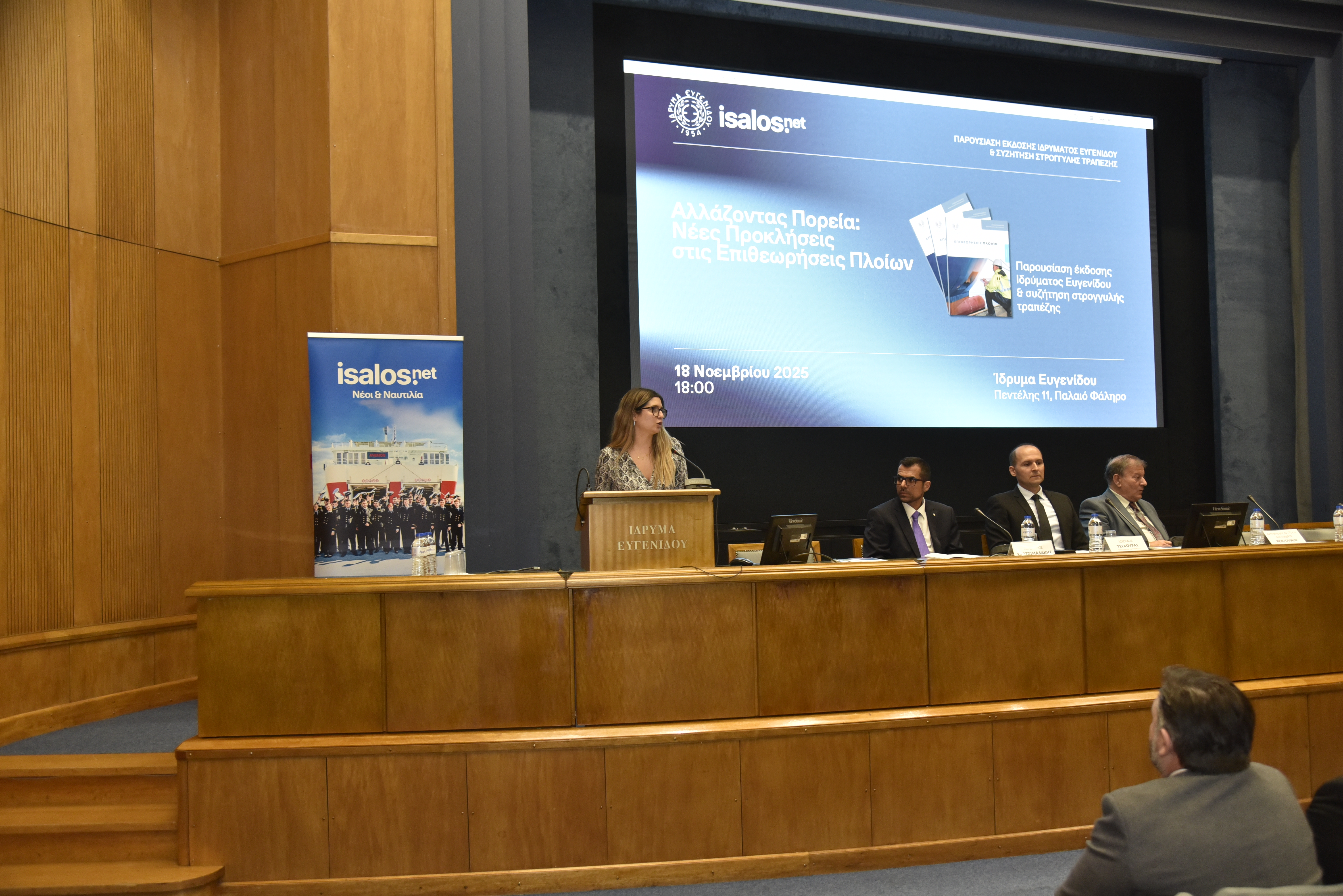 Tην Τρίτη 18 Νοεμβρίου 2025 πραγματοποιήθηκε η εκδήλωση «Αλλάζοντας Πορεία: Νέες Προκλήσεις στις Επιθεωρήσεις Πλοίων», η οποία διοργανώθηκε από την Isalos.net και το Ίδρυμα Ευγενίδου και έλαβε χώρα στο Αμφιθέατρο του Ιδρύματος.