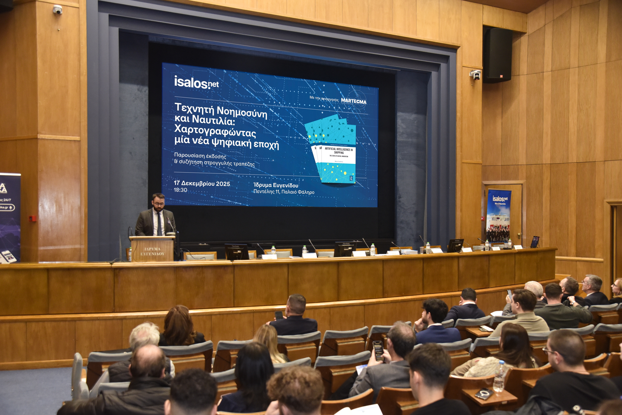 Την Τετάρτη 17 Δεκεμβρίου 2025 πραγματοποιήθηκε στο Αμφιθέατρο του Ιδρύματος Ευγενίδου η επιμορφωτική εκδήλωση με τίτλο «Τεχνητή Νοημοσύνη και Ναυτιλία: Χαρτογραφώντας μία νέα ψηφιακή εποχή», η οποία διοργανώθηκε από την Isalos.net, με τη συνεργασία της MARTECMA.